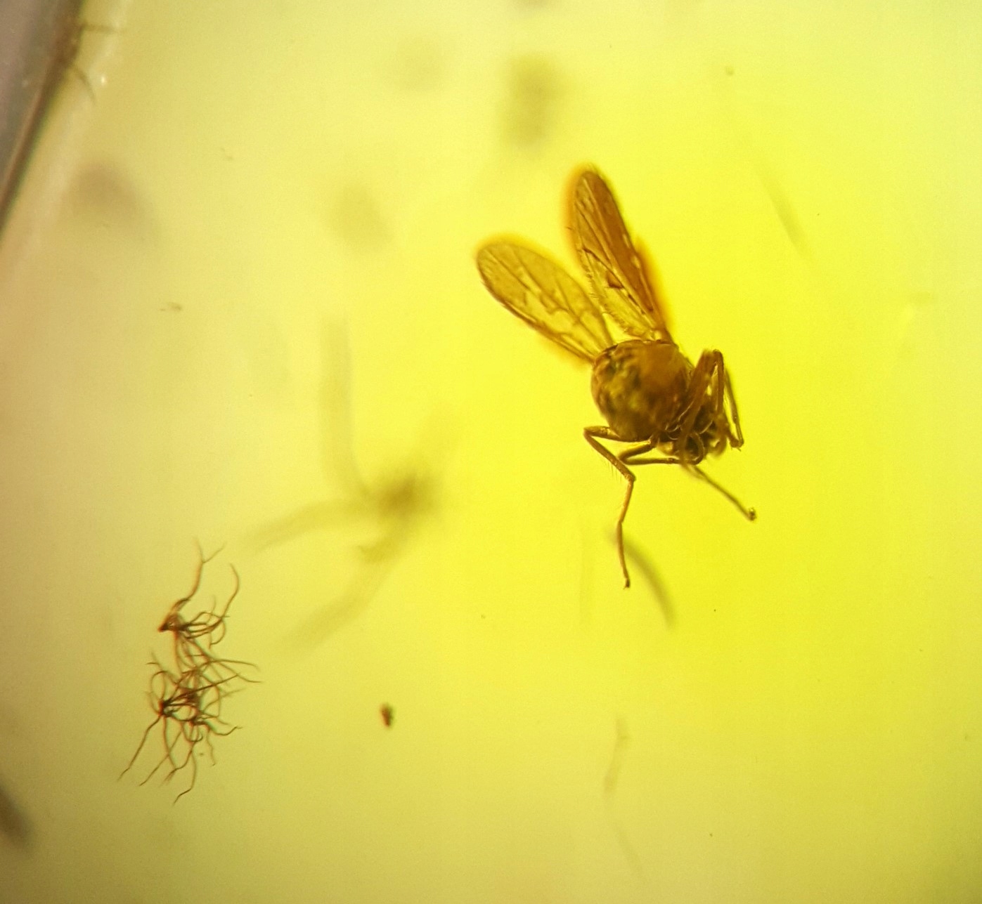 Представленное предложение включает в себя очень хорошо сохранившийся вид НАСЕКОМЫХ в янтаре - ручейник (Insecta Trichoptera) и короткохвостая муха (Diptera Brachycera) из более 40 миллионов лет назад!