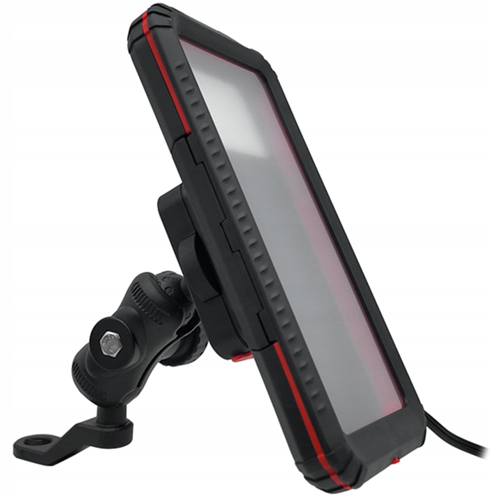 Ручка проста в своей конструкции и прочно. Поглощает вибрацию телефона во время вождения. Его преимущество - это случай, который будет защищать ваш телефон очень хорошо даже во время экстремального вождения. Он плотно закрыт и защищает от брызг дождя, пыли, пыли или грязи. Корпус можно вытащить из ручки, если вам нужно взять телефон.