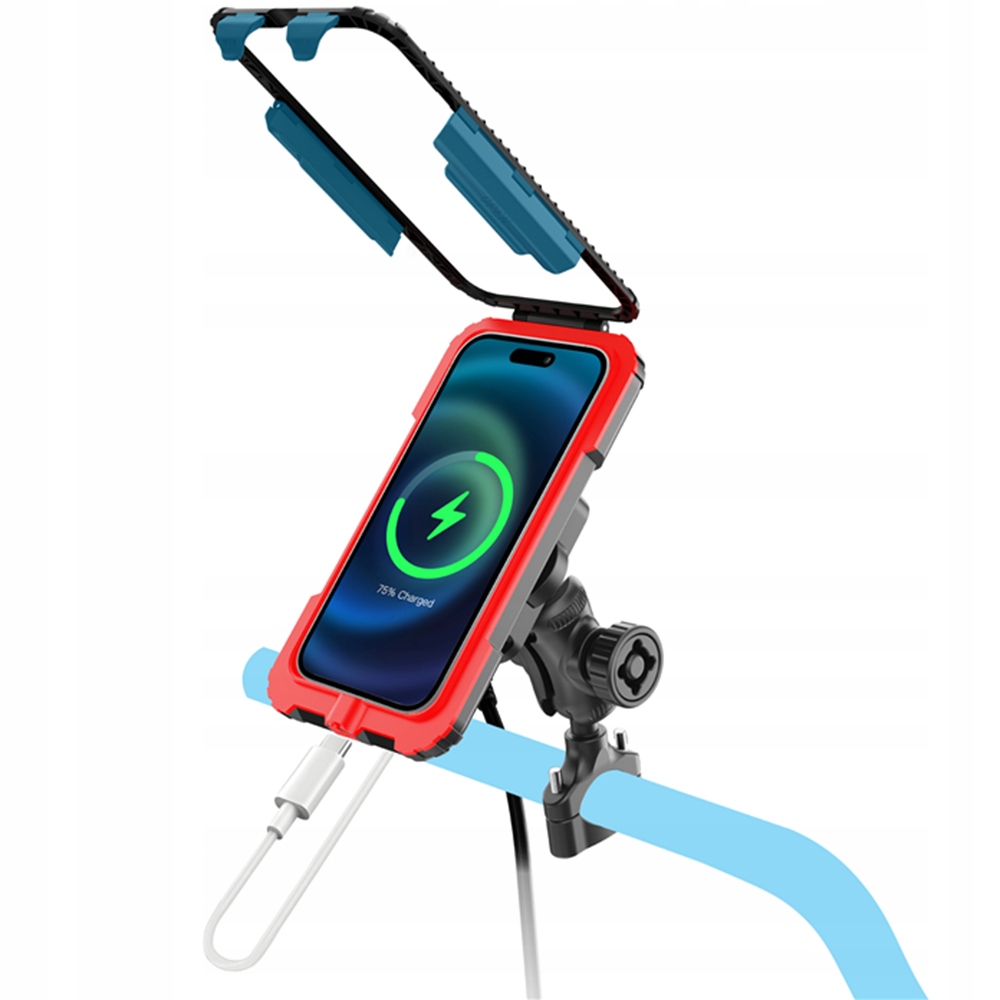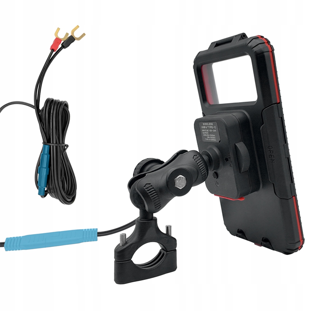 Touch Motorcycle Holder с индукцией, USB-C, QC, для мотоцикла, четырехлетняя одежда с рулевым зажимом, с зарядкой USB-C, USB и индукционной зарядкой, оснащенными водонепроницаемым корпусом с рамой преобразования с рамой конверсии для телефонов.