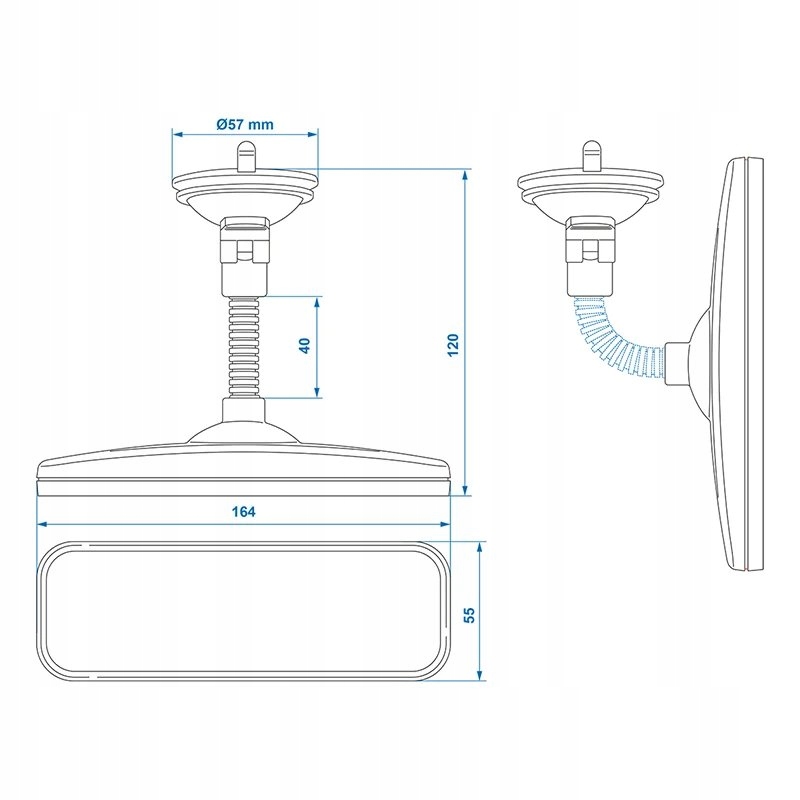 Зеркало заднего вида панорамное 164х55мм на присоске, кронштейн 4см