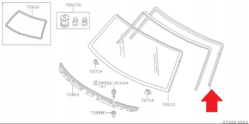 Передний уплотнение ветрового стекла внутренний Nissan Patrol Y61