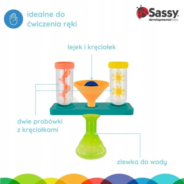Sassy - американский производитель игрушек, улучшающих навыки малышей, стимулируя их чувства и стимулирует любопытство. Бренд сотрудничает с лучшими дизайнерами и экспертами в области развития детей более 25 лет. Миссия Sassa заключается в создании аксессуаров, привлекательных для самых молодых, что в то же время поощряет обучение. Характерными особенностями бренда являются контрастные узоры, смелые цвета и уникальные материалы.