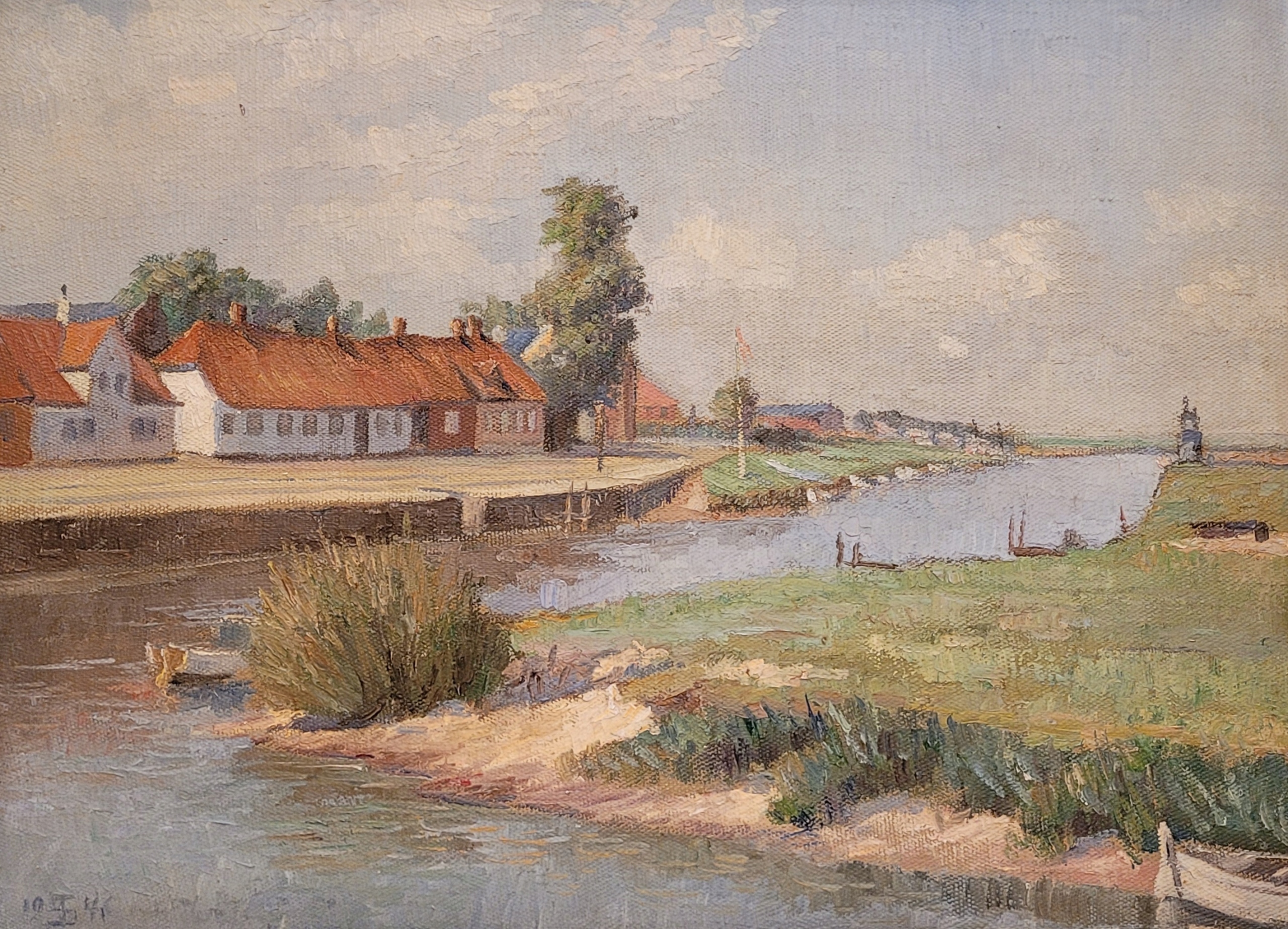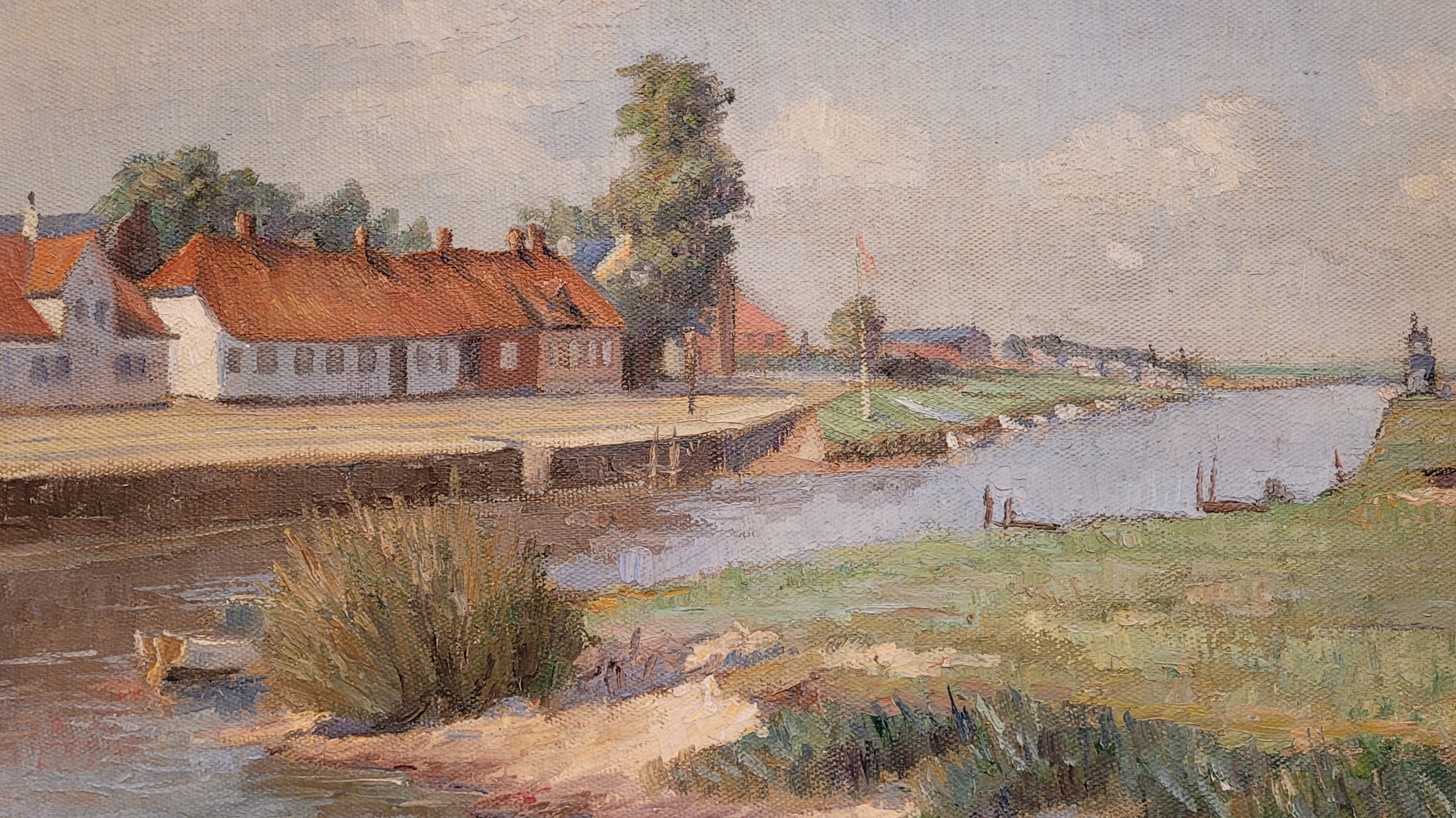 «Водный канал», подписанное изображение нефти с 1946 года.