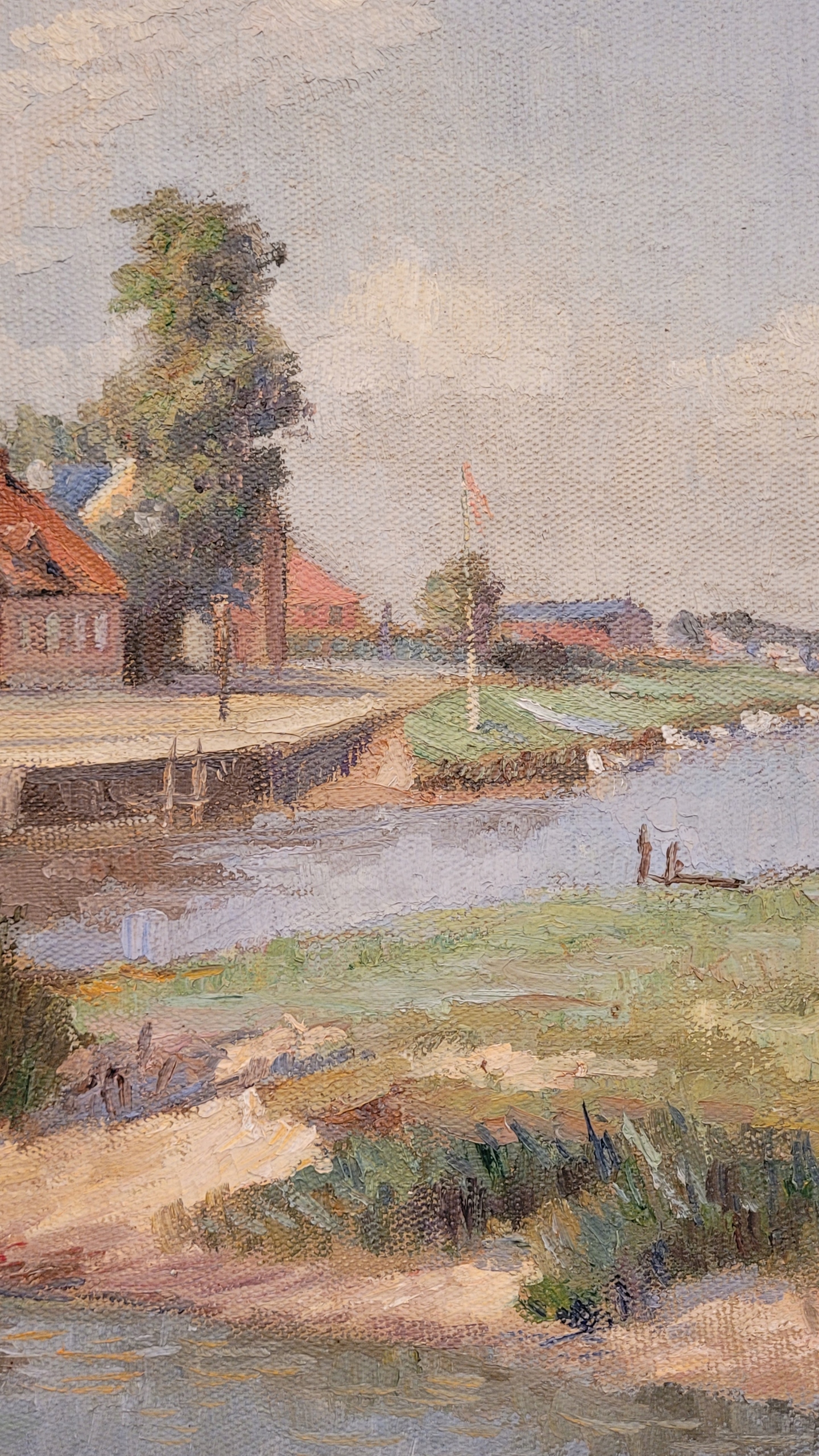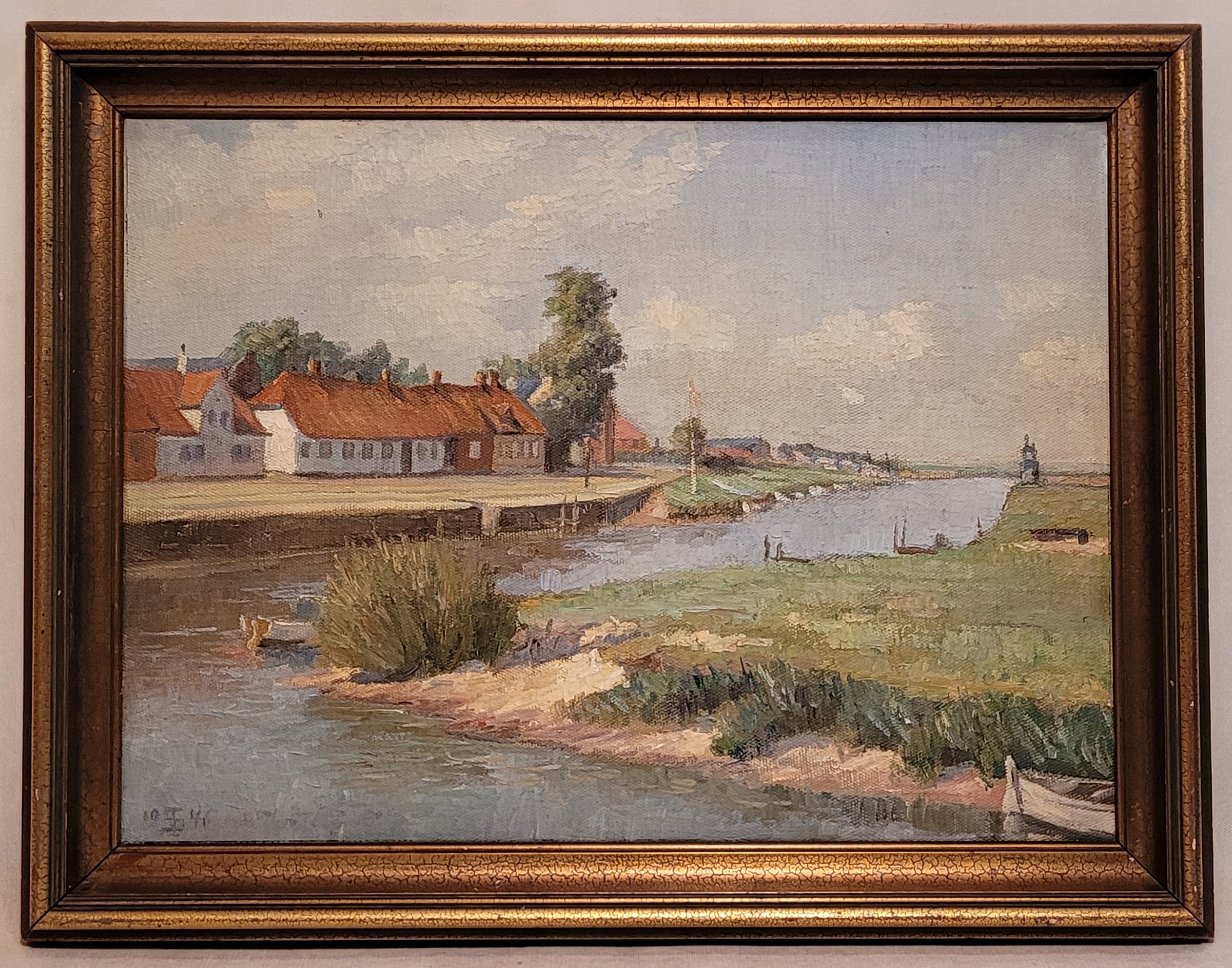 Тема продажи - красивая старая масляная картина "Водяной канал" .