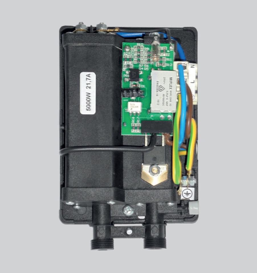 В нагревателях Perfect 350, 400, 450, 500 используется герконовый датчик расхода и электронный выключатель тока. с несравнимо более длительным сроком службы, чем у механических силовых выключателей (например, реле). Это позволило исключить ненадежные механические детали, используемые в традиционных обогревателях. Дополнительно был использован электронный датчик воздуха для ТЭНа, что еще больше свело к минимуму возможность повреждения ТЭНа из-за периодического отсутствия воды. Благодаря вышеупомянутым решениям удалось создать самый маленький проточный водонагреватель на рынке, сохранив при этом очень высокую эффективность нагрева.