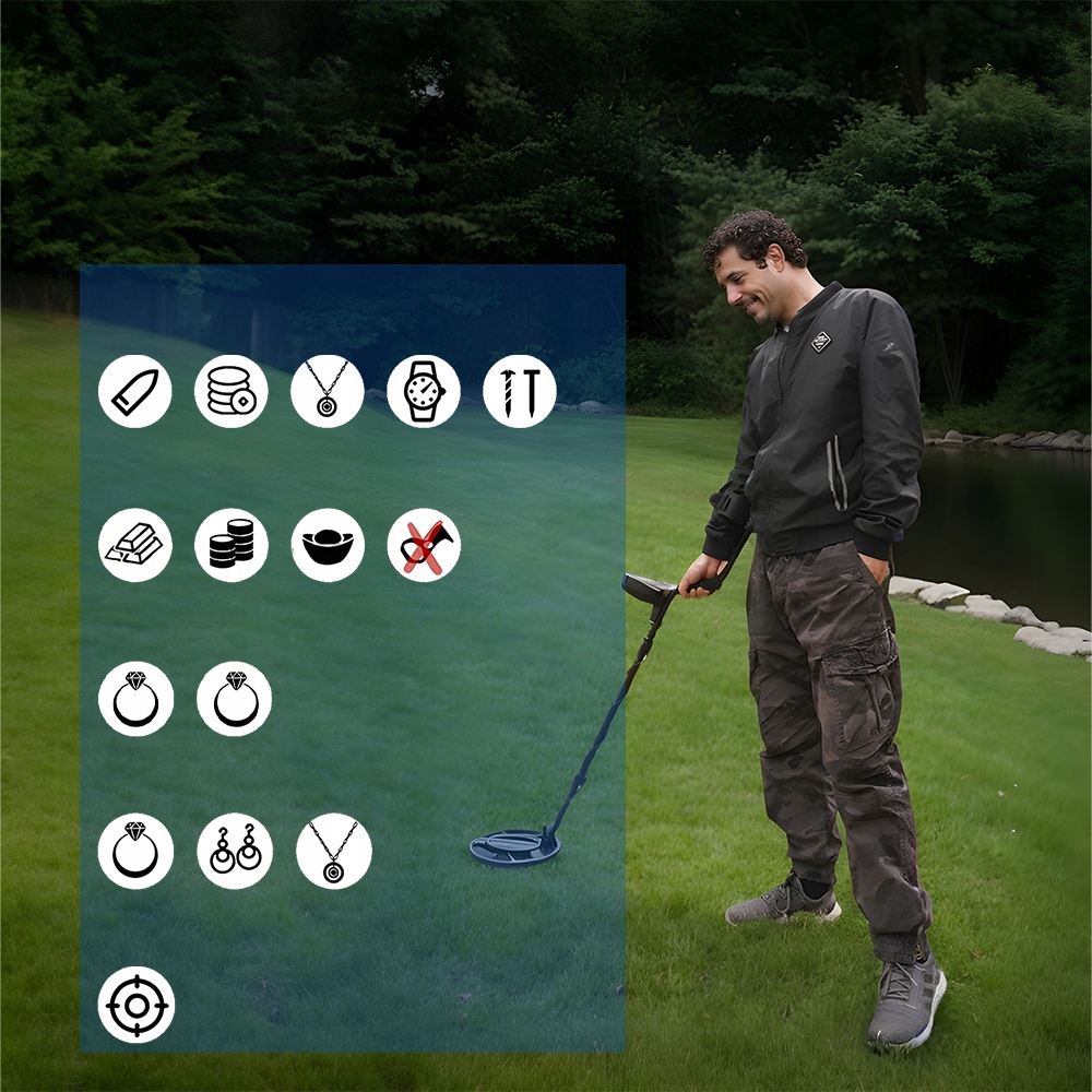 🪙🪙🪙【 5 Режимы идентификации】 детектор металла имеет 5 режимов идентификации, включая все металлический режим, режим диска, режим памяти, режим ювелирных изделий и режим точной точки. Эти режимы подходят для различных случаев и потребностей, помогая пользователям более точно определять металлические объекты.