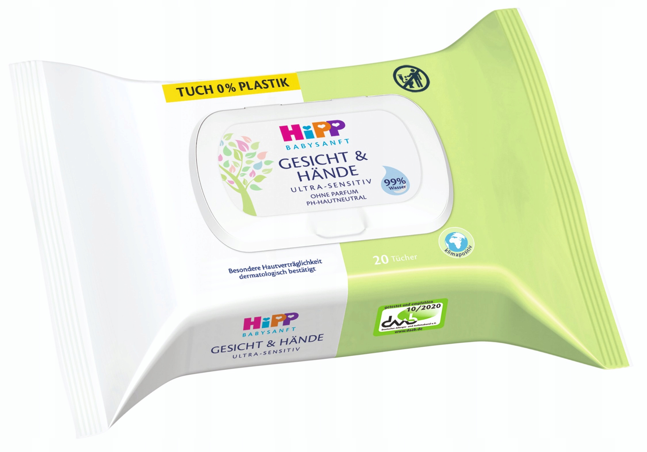 Влажные салфетки HiPP для лица и рук без запаха пропитаны жидкостью, содержащей 99 % воды. Они также идеально подходят для очищения чувствительной, склонной к аллергии и атопии кожи.