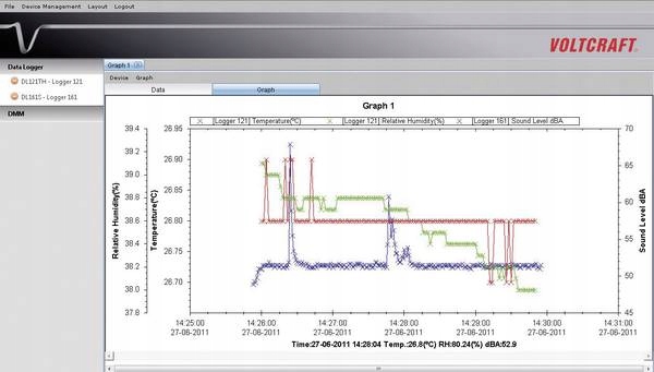 Compact Data Recorder со встроенной литийной батареей, предназначенной для регистрации 16000 значений измерения температуры и 16 000 измерений влаги. Сохраненные данные можно прочитать с помощью USB -разъема, отображаемого в графической форме благодаря включенному программному обеспечению или экспорту в другие программы для дальнейшей обработки. Кроме того, можно рассчитать температуру точки росы и температуру испарения (влажный термометр).