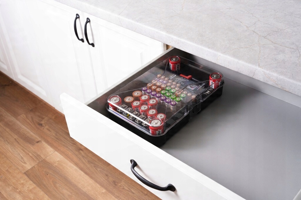 Органайзер для батареек и аккумуляторов Kistenberg Battery Box KBBT с тестером энергии. Он не только будет следить за порядком, но и легко проверять состояние заряда хранимых элементов.