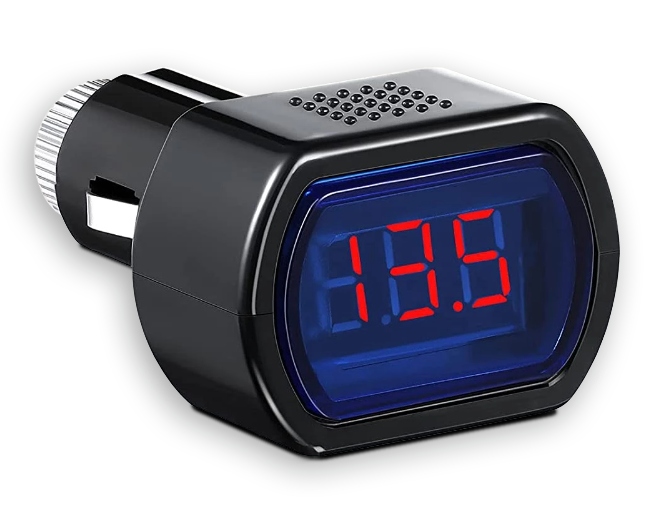 Тестер следует вставить в гнездо прикуривателя, после помещения его в гнездо на дисплее появится индикация напряжения. Вольтметр имеет очень четкий цифровой светодиодный дисплей (красные цифры), поэтому чтение показаний не составит проблем даже в солнечный день.