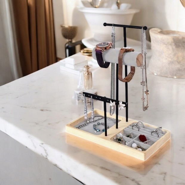 Элегантный ювелирный стенд является важным гаджетом для каждой женщины, которая хочет заказать в своей коллекции браслетов, часов и других украшений и демонстрировать их эстетическим и роскошным способом. Ваши украшения больше никогда не будут запутаны, и у вас будет быстрый и легкий доступ.