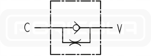 - Соединение: поток от C к V регулируется, от V к C свободно после превышения давления 0,5 бар.