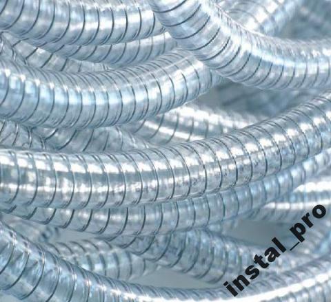 Очень прочный и гибкий всасывающий и напорный шланг из прозрачного ПВХ, армированный спиралью из стальной проволоки. Гладкие внешние и внутренние поверхности.