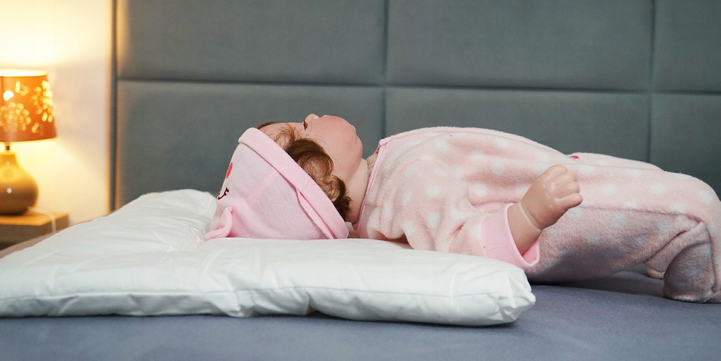 - Плоский профиль: специально разработанный плоская структура подушки поддерживает правильное развитие позвоночника ребенка, предотвращая неправильное положение головы во время сна.