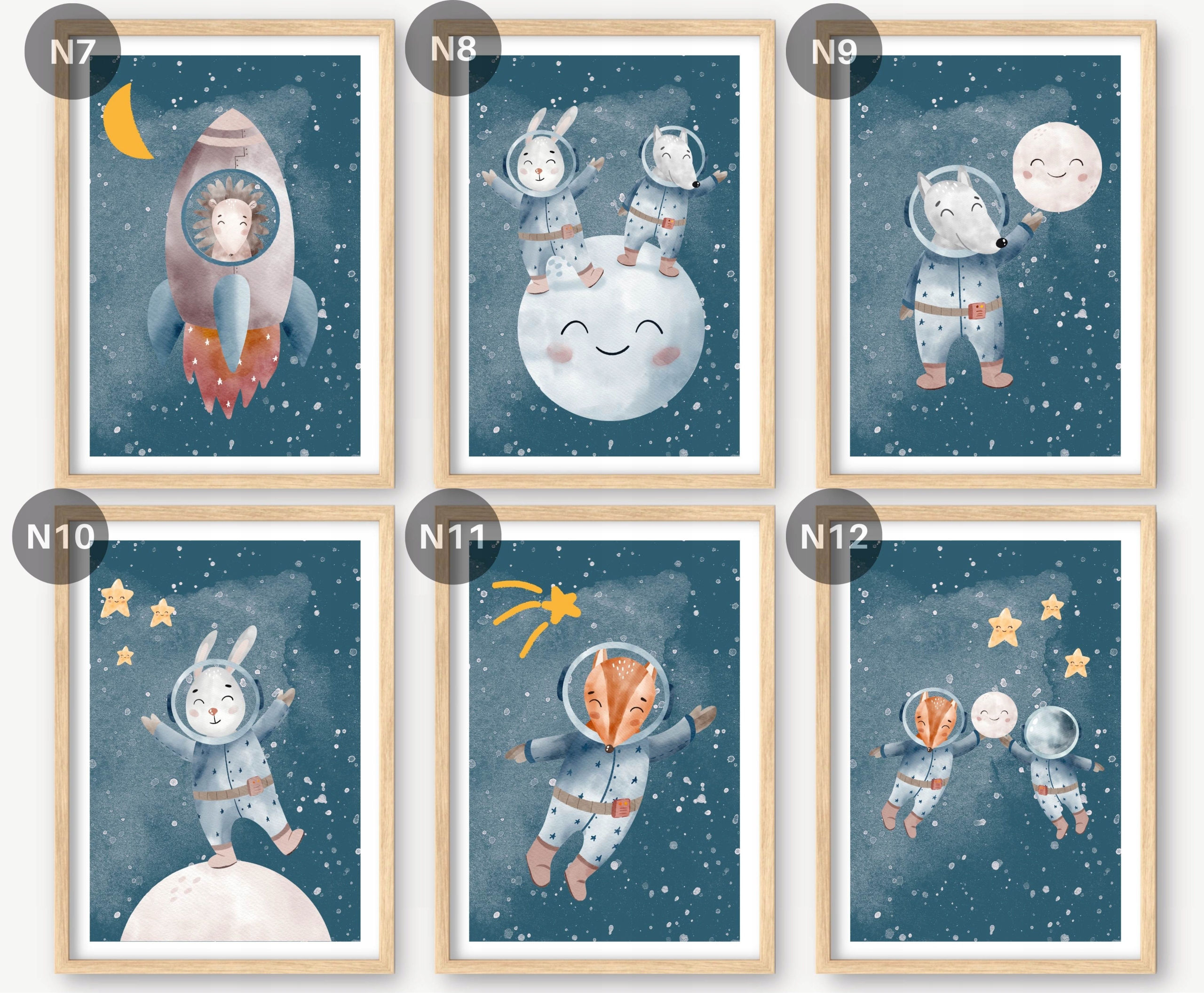 Красивые плакаты о предмете пространства показывают полет на Луну животных-Тесторан. Аранжировка детской комнаты - сложная задача. Стоит изолировать внутреннюю атмосферу аксессуарами, такими как плакаты, и не оставлять пустые стены. Красивая графическая идеала будет работать в комнате ребенка и идеально вписывается в каждый декор.