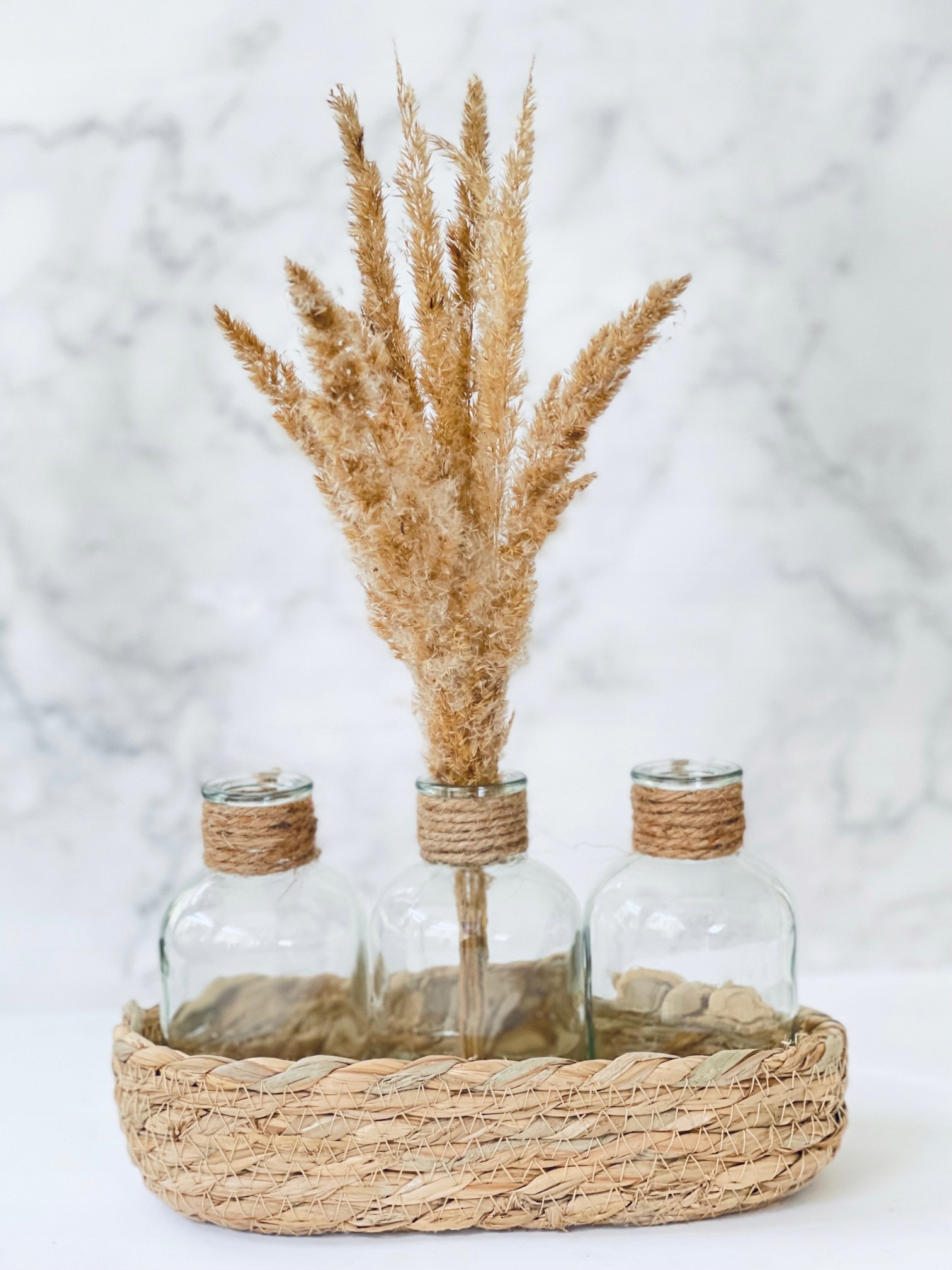 набор из 3 стеклянных ваз - бутылки + натуральные Корзина h1>