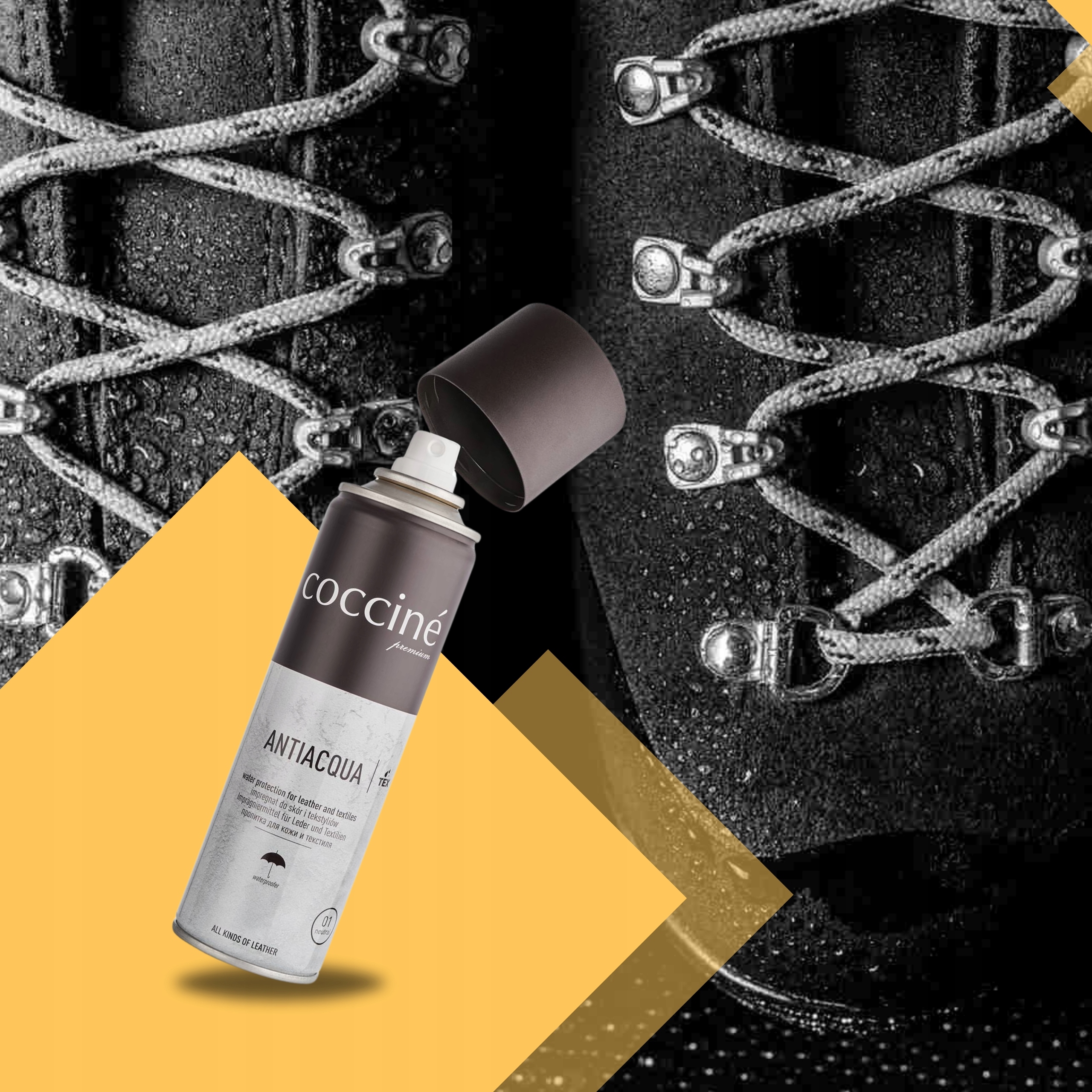 Защита обуви от влаги и грязи является ключом к их долговечности и эстетическому внешнему виду. Coccine AntiAcqua - это профессиональная водонепроницаемая пропитка , которая эффективно защищает зерновую кожу, замшевую, нубук и текстиль от влаги, осаждения грязи и пыли. Благодаря инновационной формуле, она создает невидимый гидрофобный барьер , не блокируя воздухопроницаемый материал, который позволяет коже естественным образом регулировать влагу.