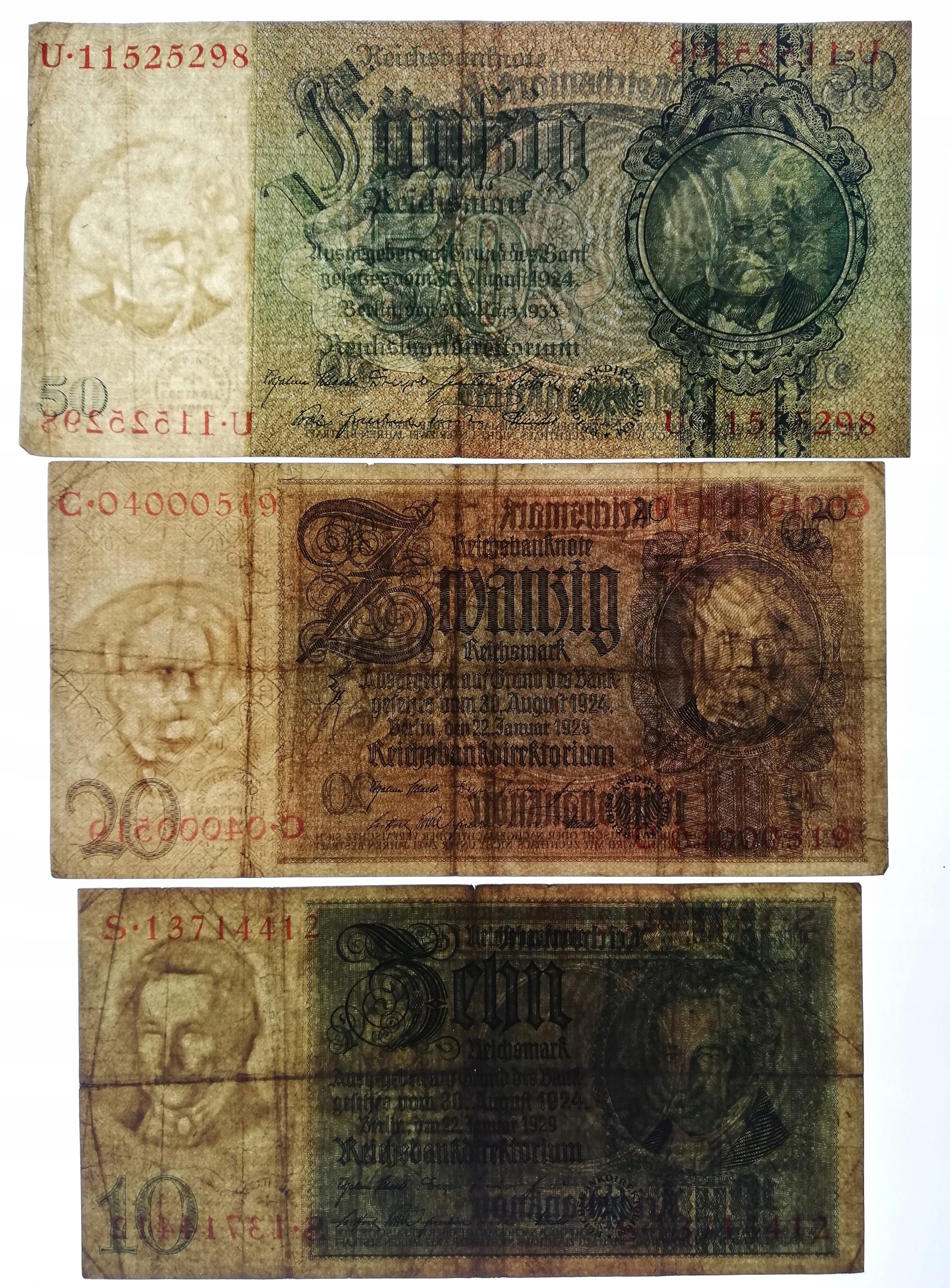 Набор 10, 20, 50 брендов Reichsmark 1929 1933 Германия третья банкноты (1)