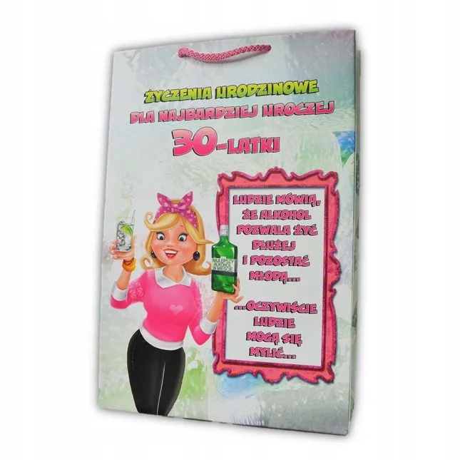 Элегантный подарочный пакет с такой же забавной надписью к 30-летию. Пакет изготовлен из плотной лакированной бумаги.