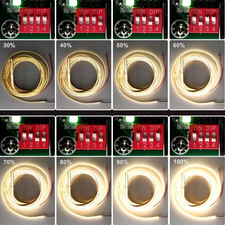 2) using switches from 2 to 3 you can set the light intensity according to the scheme visible on the power supply (up to 8 programs 30%, 40%, 40%, 40%, 40%, 40%, 40%, 40%, 40%, 40%, 40%, 40%, 40%, 40%, 40%, 40%, 40%, 40%, 40%, 40%, 40%, 40%, 40%, 40%60%, 60%, 70%, 80%, 90%, 100%)