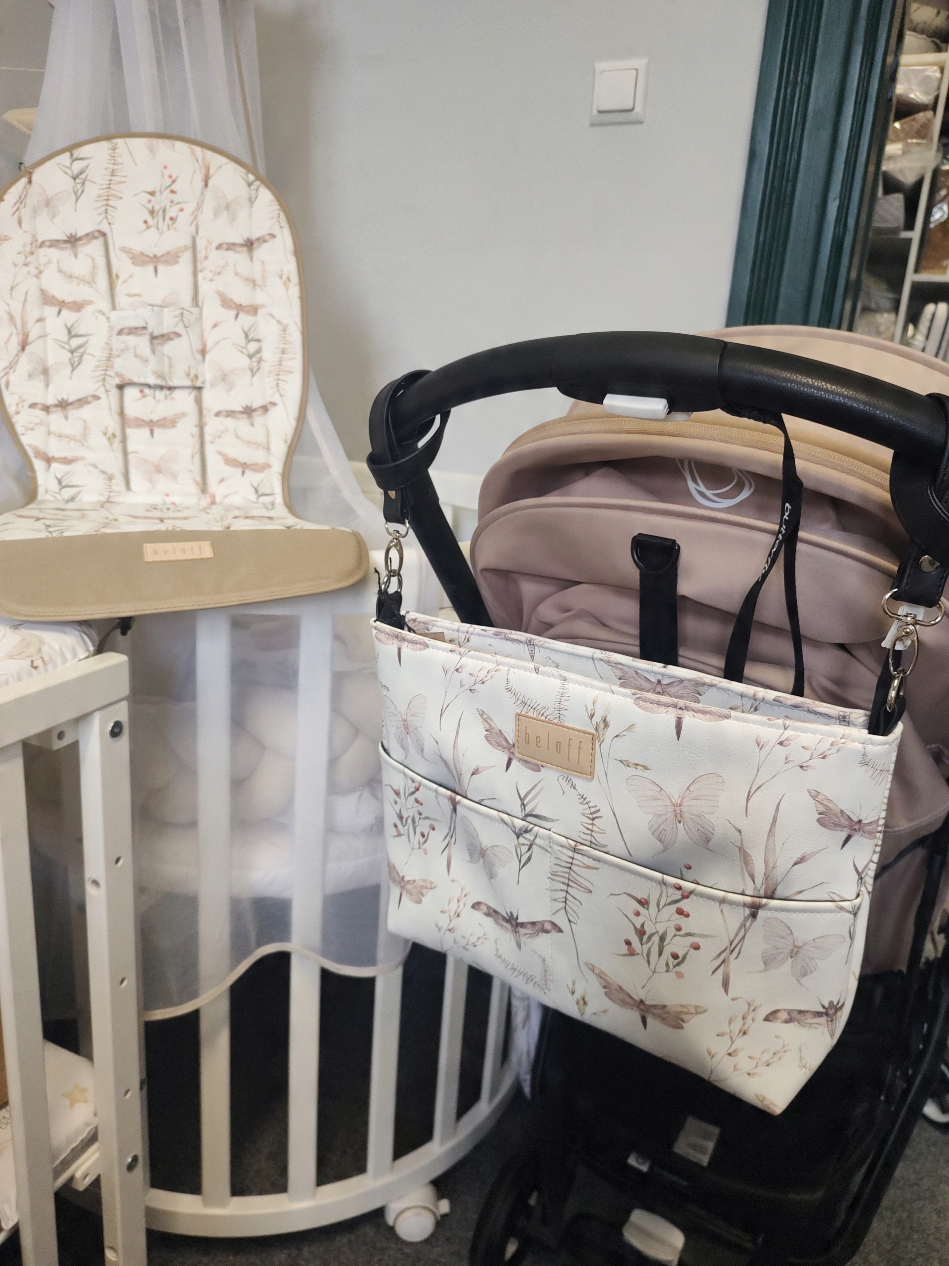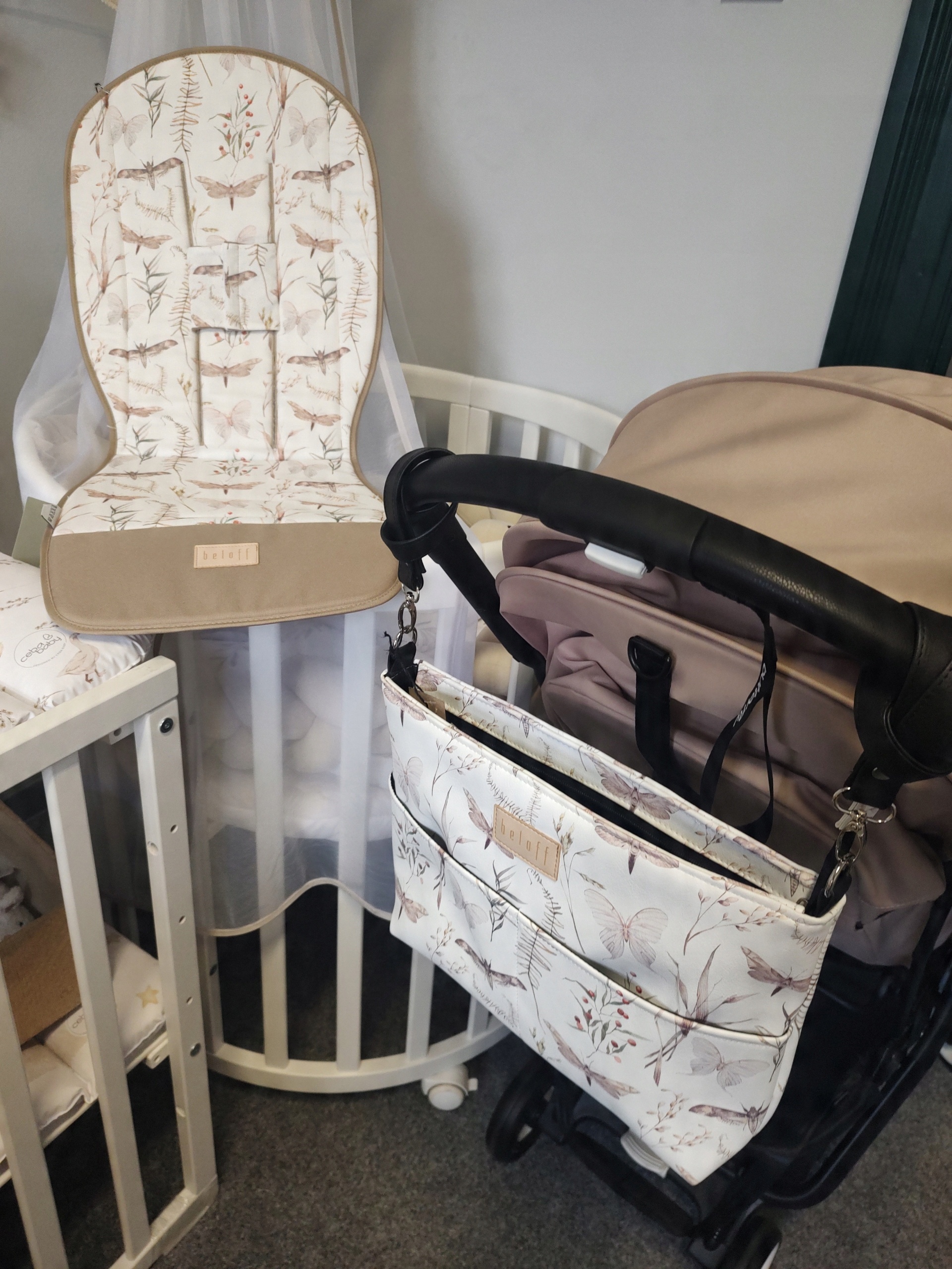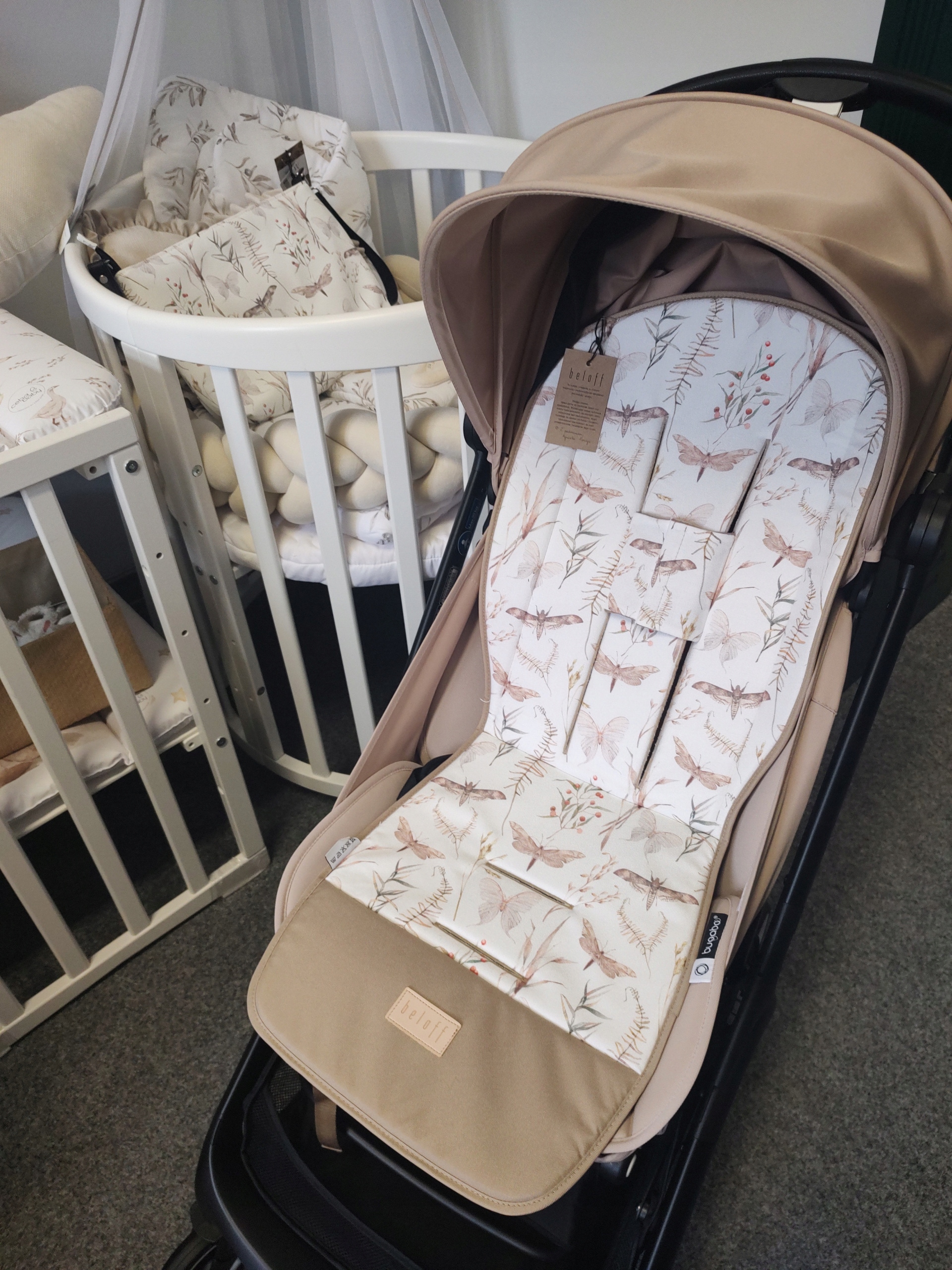 - Вставка от Beloff гибкая и прекрасно адаптируется к форме коляски: