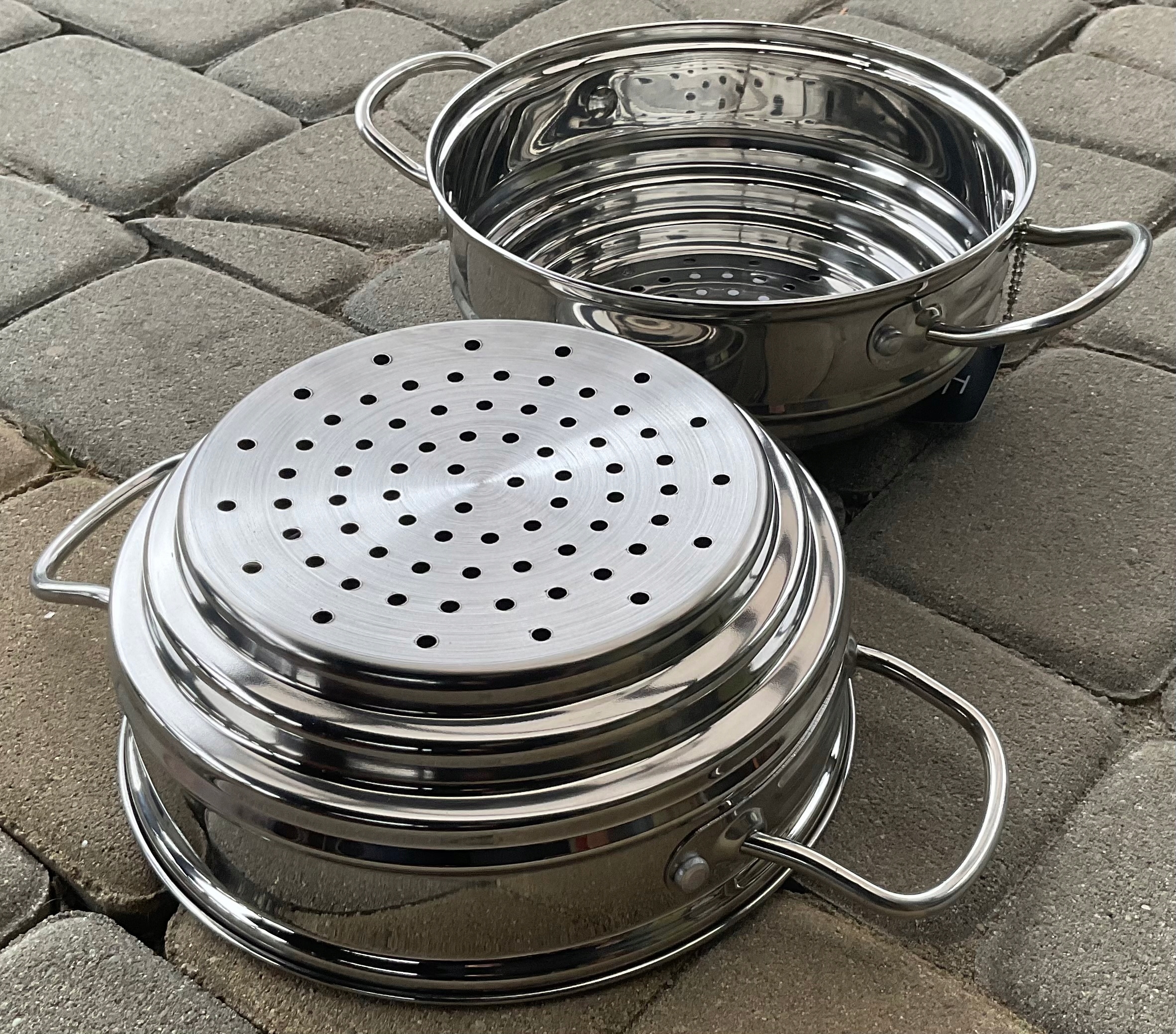 Вставки для приготовления на пару в виде сита со ступенчатым дном, подходят для кастрюль трех размеров: 16, 18 и 20 см. диаметр. Набор из 2 шт.