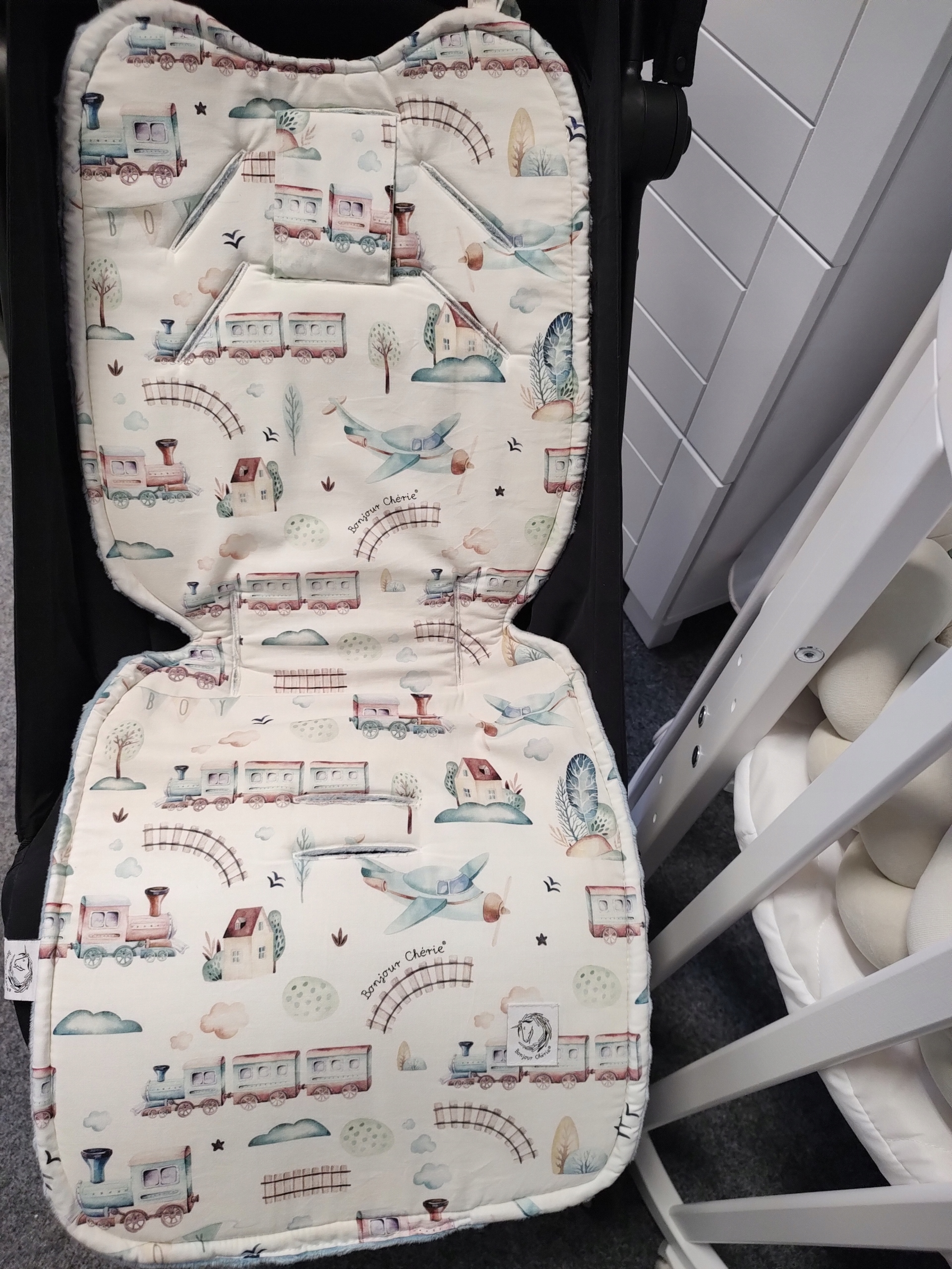 Кроме того, он наполнен эластичным мягким поролоном. Благодаря На бамбуковой ткани ребенок потеет меньше, чем сидя на искусственном материале коляски. Если вставка испачкается, ее легче постирать, чем всю обивку в коляске.