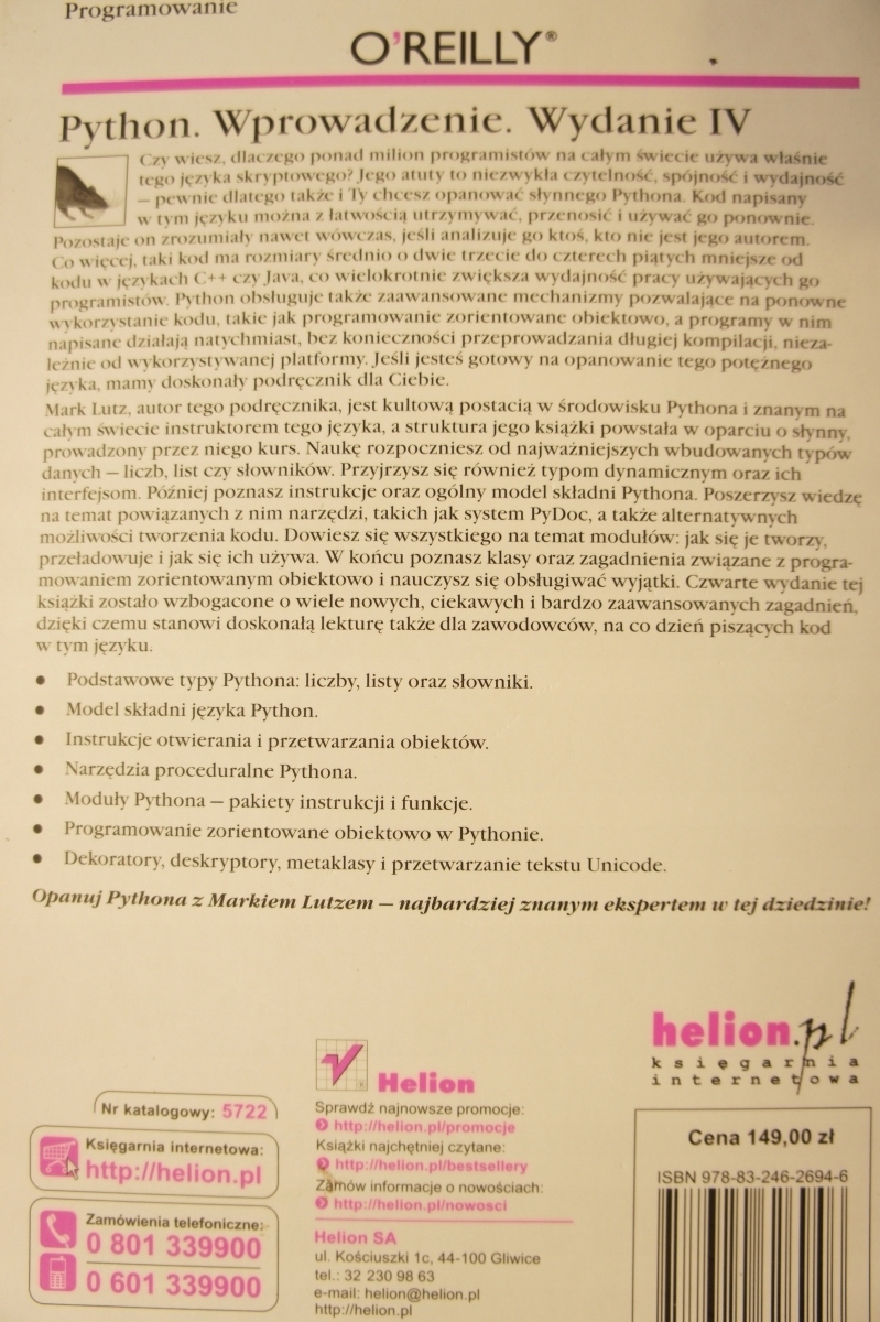 Приобретая «Введение Python Mark Lutz», вы можете быть уверены, что данное изделие из каталога «Программирование» вы получите через 5-7 дней после оплаты. Товар будет доставлен из Европы, проверен на целостность, иметь европейское качество.