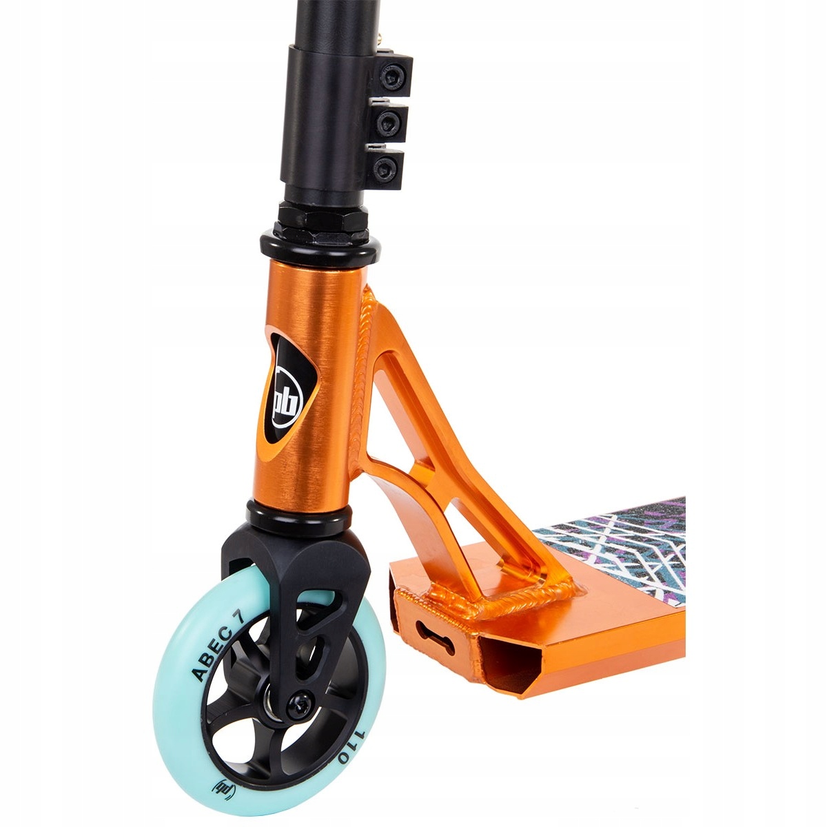 К преимуществам можно отнести противоскользящий слой в месте контакта ноги с самокатом (500 Х 110 мм), очень легкие (3,6 кг) и прочные колеса на шарикоподшипниках, а также безопасный тормоз заднего колеса.