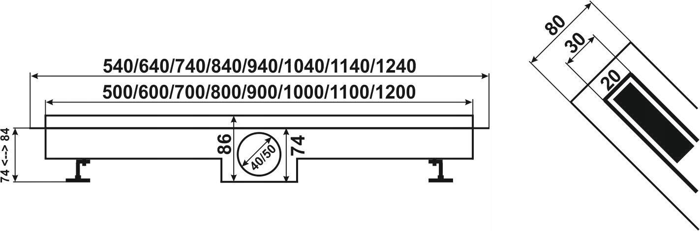 ЛИНЕЙНЫЙ СЛИМ SLIM Квадрат 20 мм - ДЛИНА - 110 см - ПОВОРОТНЫЙ СИФОН