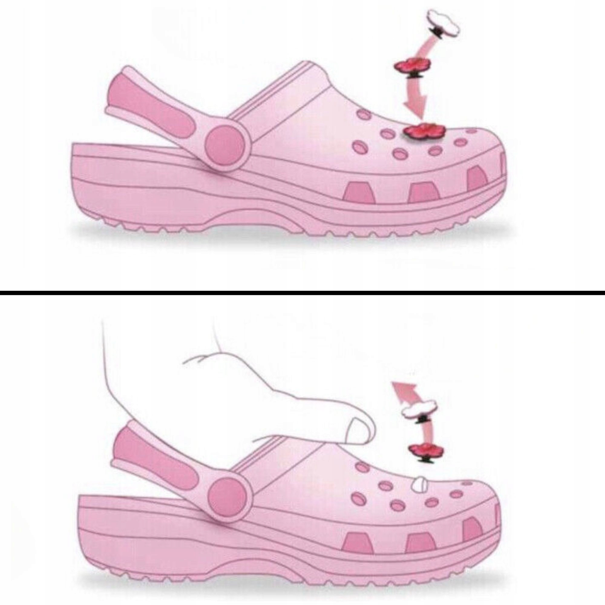 Jibbitz легко устанавливается, вставляется в отверстия обуви Crocs и при необходимости быстро заменяется на другой. Инструменты не требуются.