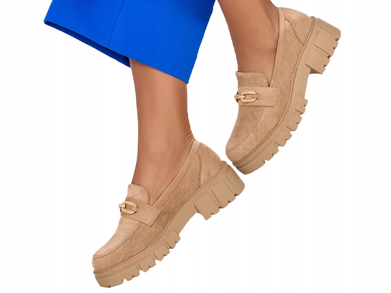 Бежевые лоферы на платформе с пряжкой Casu G23X6-BE