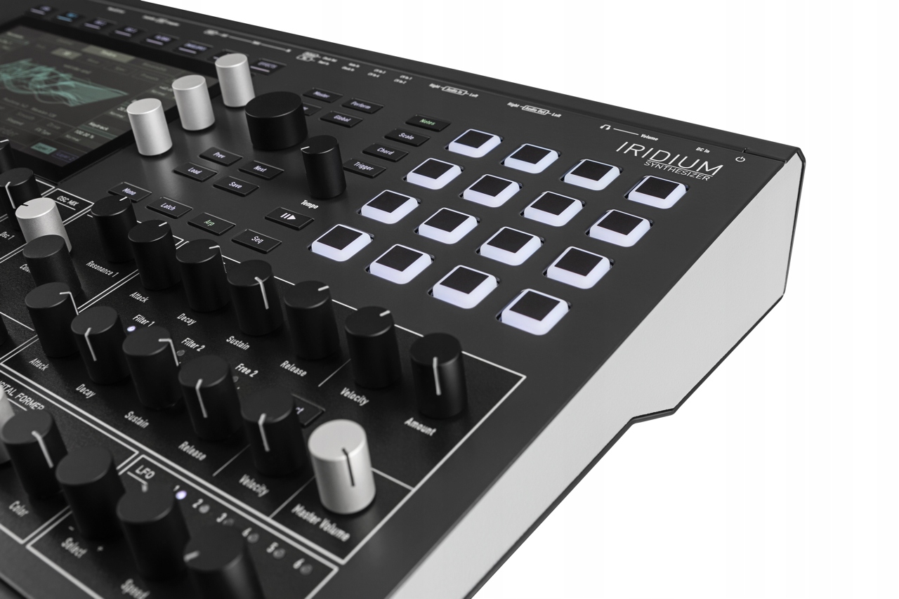 С IRIDIUM Waldorf представляет успешную настольную версию этого уникального QUANTUM-синтезатора, которую можно считать важной вехой. в истории синтезаторов. В дополнение к отсутствующей клавиатуре и получившемуся в результате корпусу меньшего размера (в формате WaldorfKYRA) сразу 16hintergrundbeleuchteten Padsдальше. Они служат, среди прочего, для программирования внутреннего секвенсора Iridium величественно сияет 16 стимулами (Quantum: 8 голосов) и имеет восемь входов и выходов управляющего напряжения на задней панели. Квантовый аналоговый двойной фильтр нижних частот. Он был заменен цифровым двухрежимным фильтром.