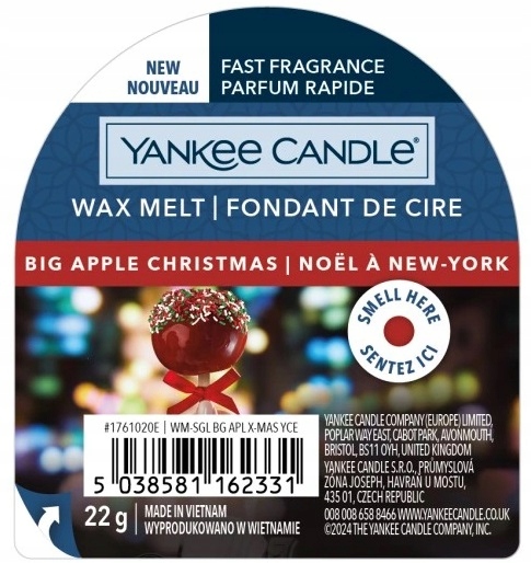НОВИНКА ароматический воск от Yankee Candle BIG APPLE CHRISTMAS — ароматический воск, небольшой и очень полезный, когда вы хотите за короткое время наполнить комнату прекрасным ароматом. Плавяясь под воздействием тепла в декоративном камине, он источает интенсивный аромат. Воски можно комбинировать для создания собственных уникальных ароматических композиций.