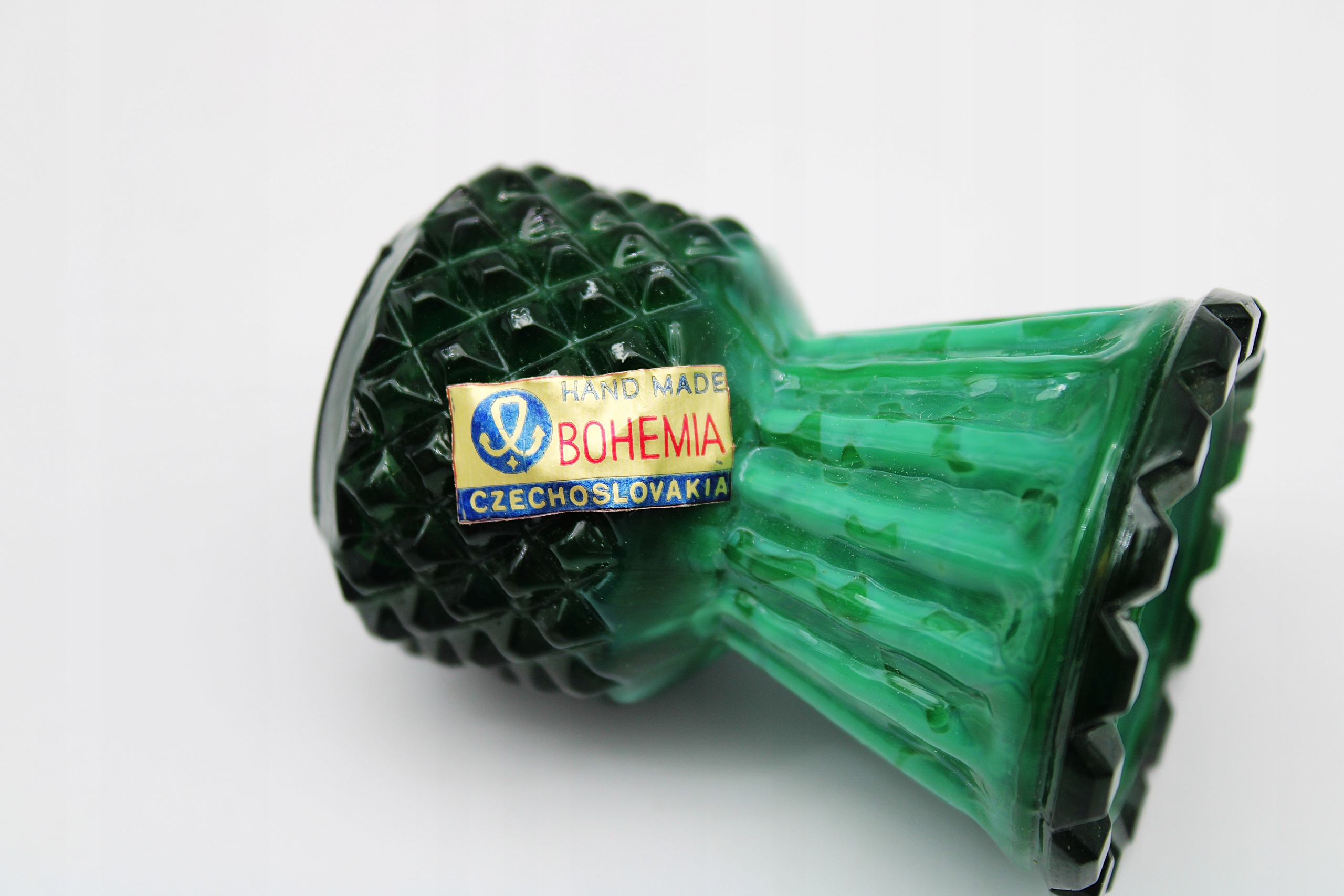 WAZONIK SZKŁO MALACHITOWE BOHEMIA PROJEKT CURT SCHLEVOGT CZECHOSŁOWACJA