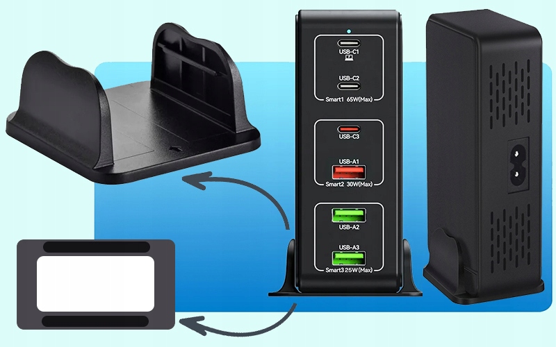✅ Зарядное устройство можно размещать вертикально с подставкой или горизонтально без подставки..