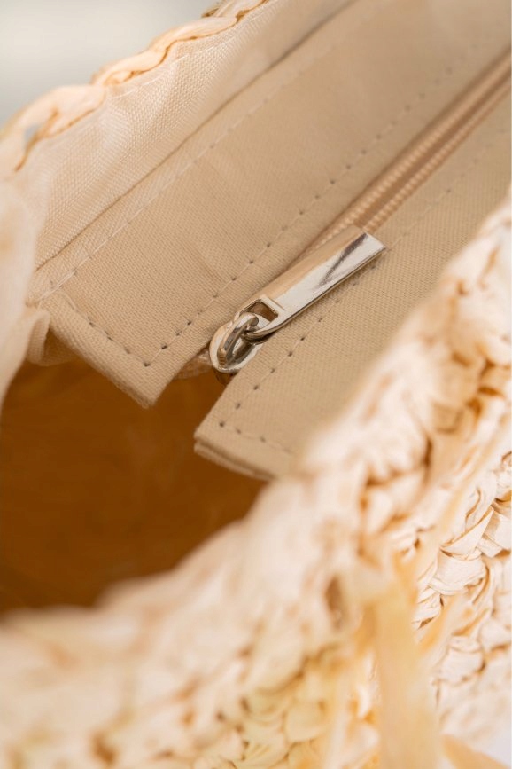 Женская плетеная летняя сумка из сильной светлой целлюлозы.