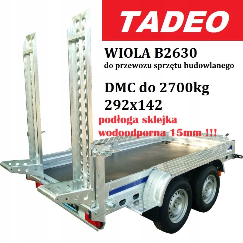 Wiola B2630 B2730 2700 кг трейлер для экскаватора, 292x142 Trap, фанера 15 мм!