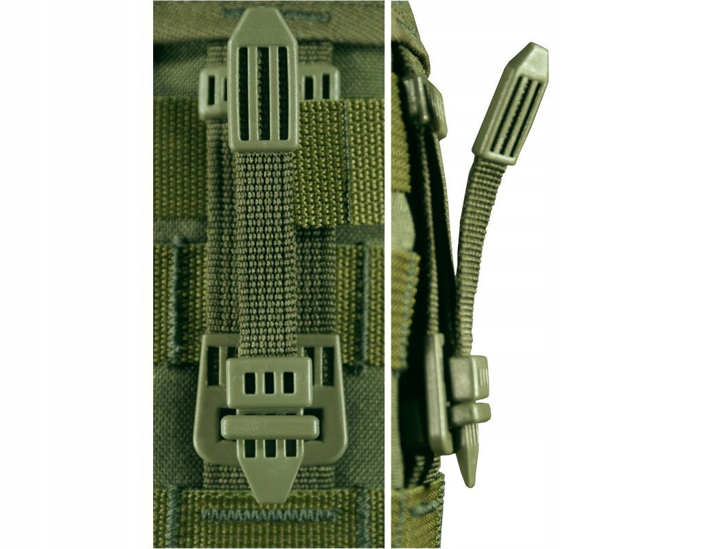 Спереди, боковые стенки и лоскут имеют систему сборки Molle (приятели) системы монтажа Molle, которая позволяет прикреплять мешки, аптеки и мешки за рюкзаком.