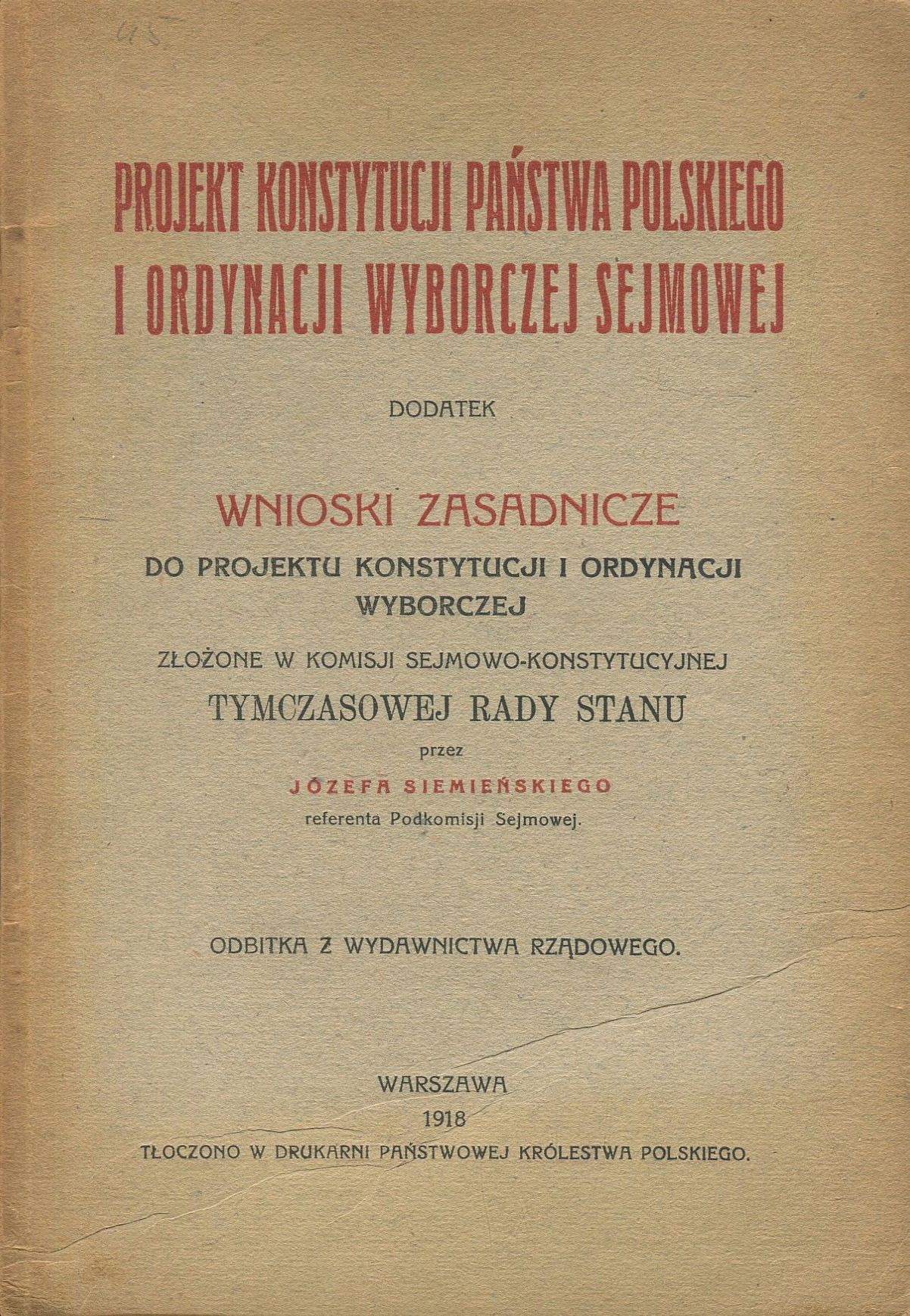 WNIOSKI ZASADNICZE DO PROJEKTU KONSTYTUCJI I ORDYNACJI WYBORCZEJ 1918