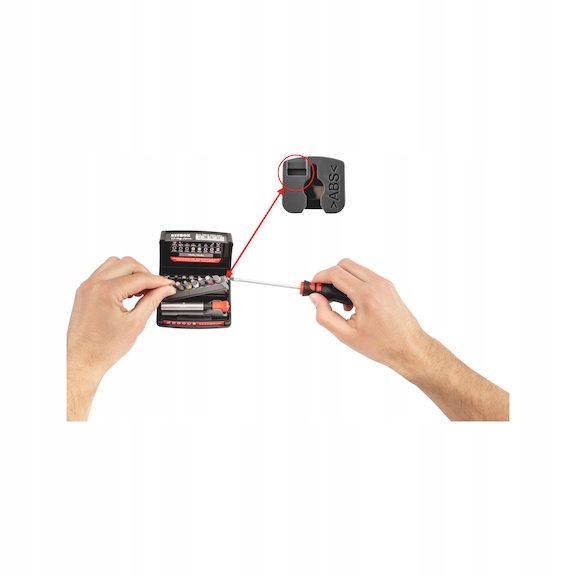 Широкий ассортимент, включая RW, PH, PZ, TX, шестигранные биты и плоские биты в сменных лентах > , с держателем бит. Продукт доступен в системном боксе для бит ORSY®.