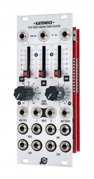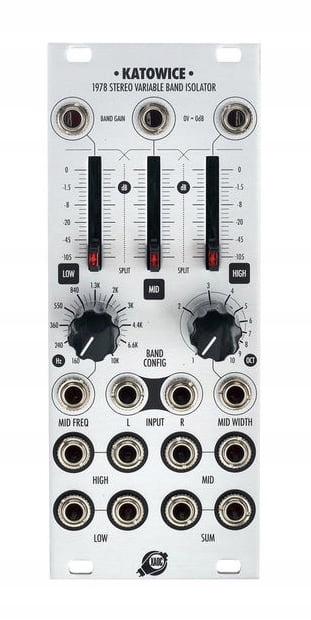 katowice с устройствами xaoc - это комбинация изолятора (эквалайзер убийства) и кроссовера , и поэтому их следует рассматривать как фильтр. Схема предназначена для для стереосигналов , что также означает, что участвуют индивидуальные частоты низких, средних и высоких частот. Калиброванный модуль содержит три VCA, которые могут контролировать уровень этих трех полос. Диапазон регулировки здесь составляет от 0 дБ (усиление единицы) до -105 дБ, что соответствует отставке в частоте. Z полоса конфигурации частота переключения между тремя диапазонами может быть установлена в диапазоне 1-10 октав и 160-10 000 героев.