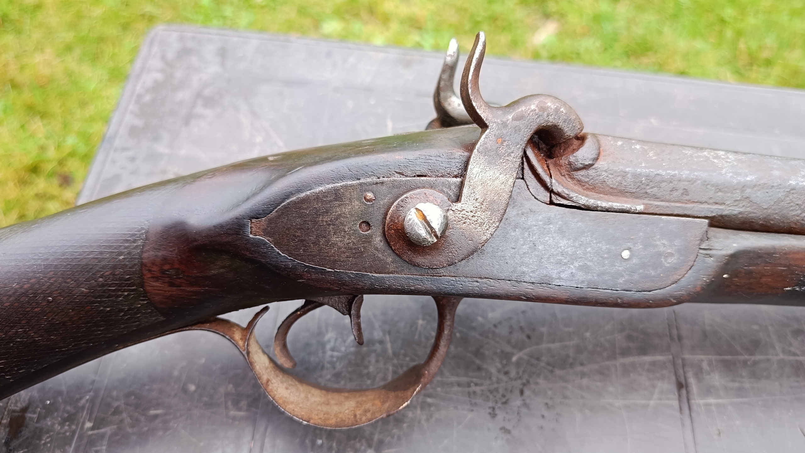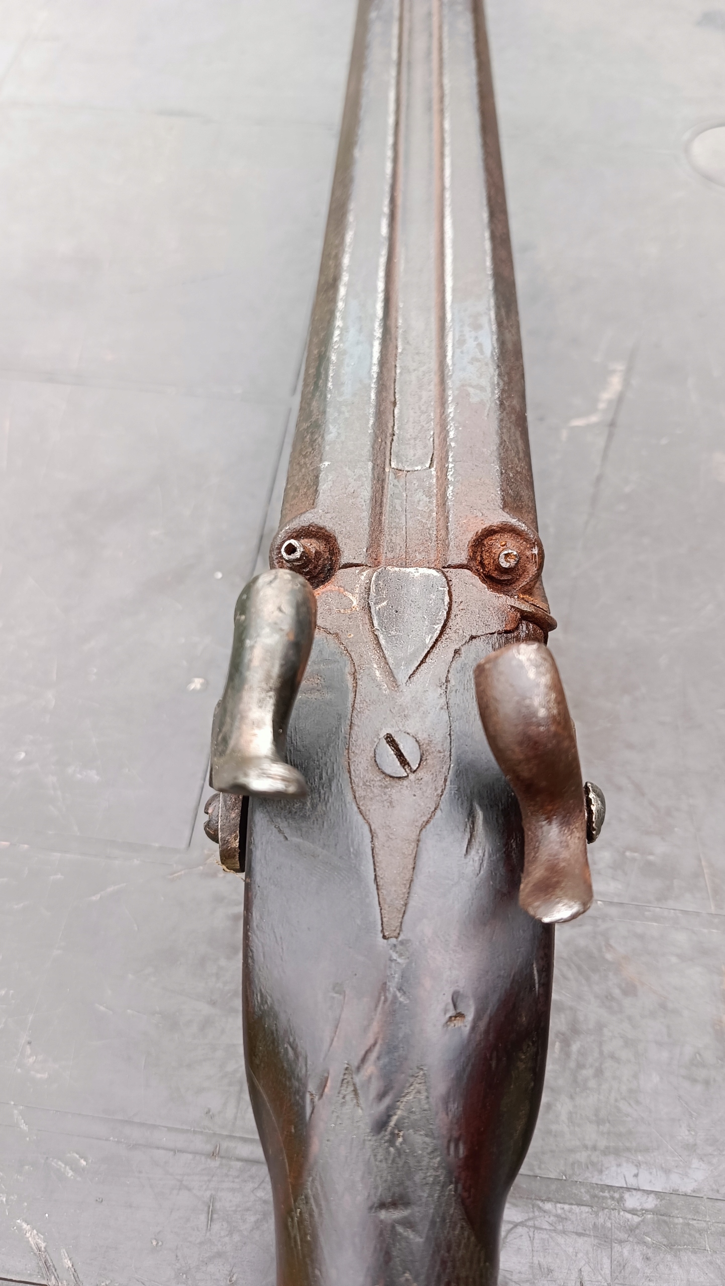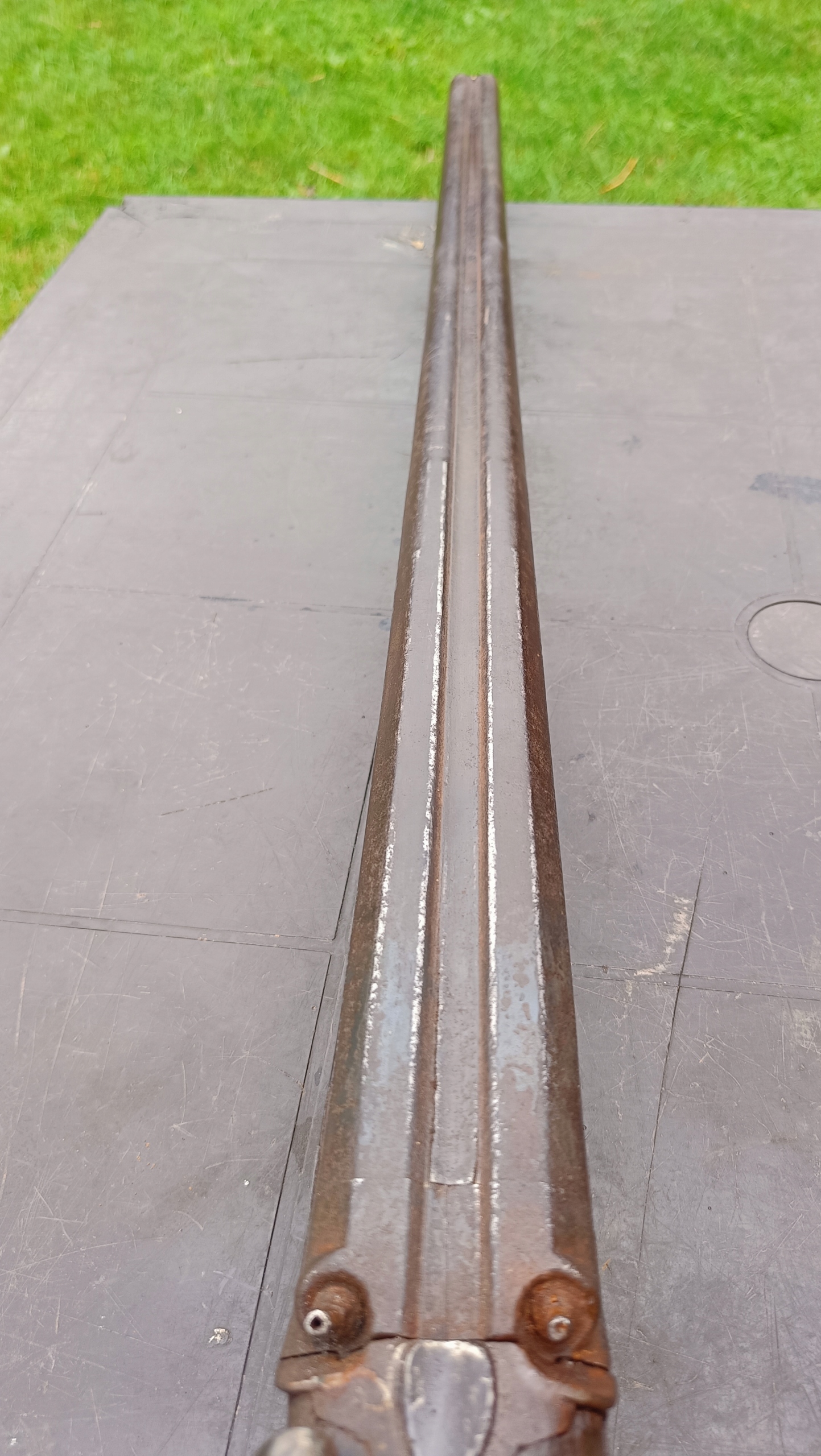 Загружено с фронта. Вы можете сделать сухой выстрел, двойное напряжение. Замок спускового крючка затянуты двумя стержнями. Прямая ствола, легкие вмятины в подготовке. Дерево в хорошем состоянии. Камины будут заменены.