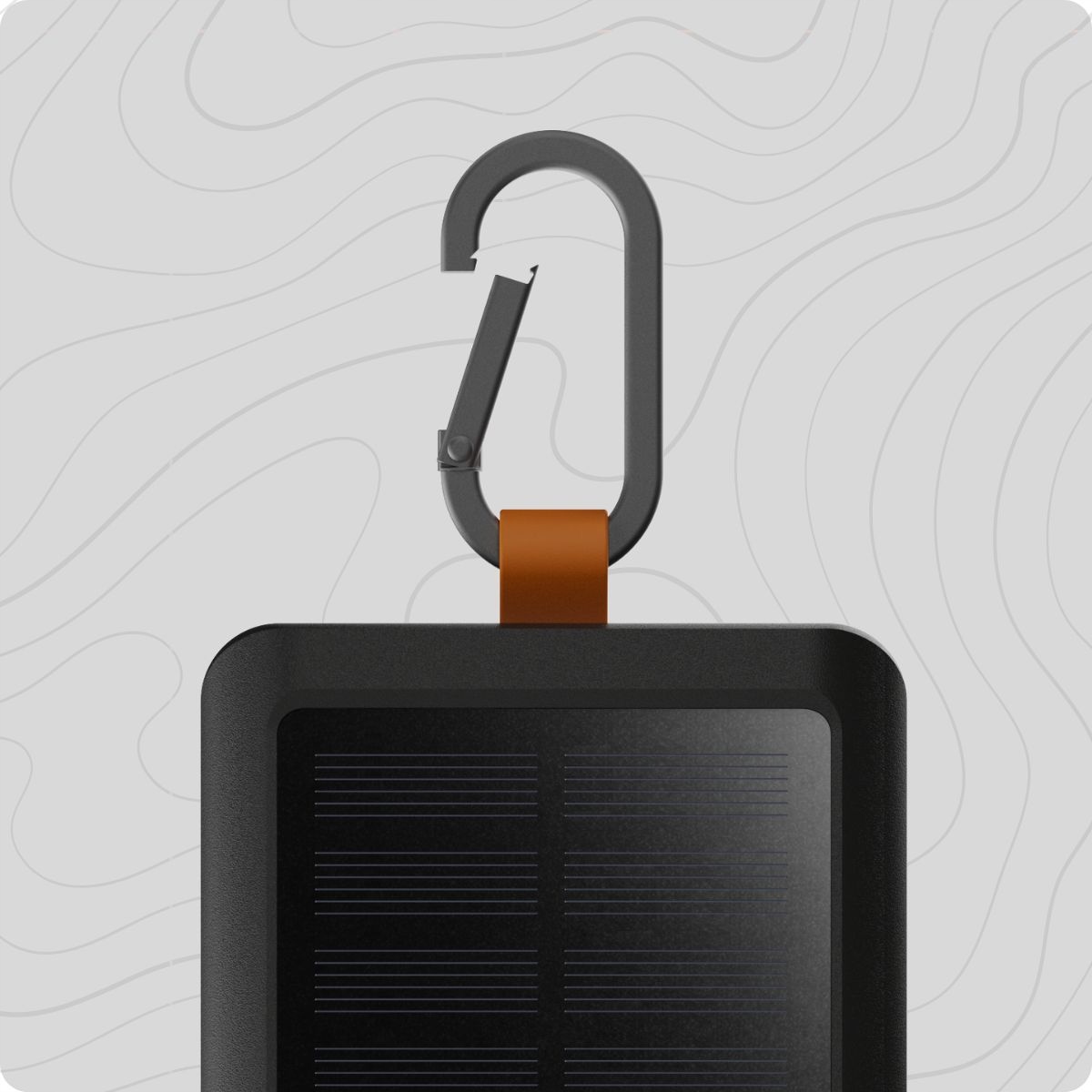 GO2 Солнечный банк энергии чрезвычайно тонкий и легкий, идеально подходит в сумке или рюкзаке. Благодаря Практическому карабинеру вы можете легко прикрепить его к рюкзаку, палатке или одежде.