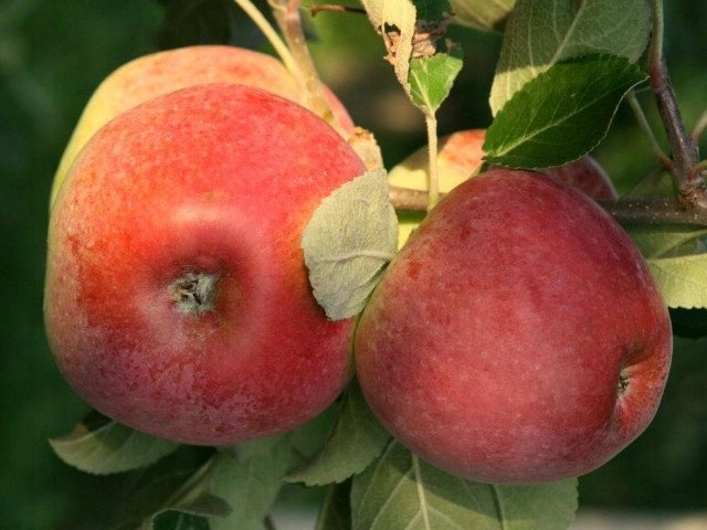 Плоды среднего размера, шаровидные, приплюснутые, зеленовато-желтые, большей частью покрыты красным румянцем. Мякоть кремовая, средней твердости, кисловатая, ароматная, очень вкусная.
