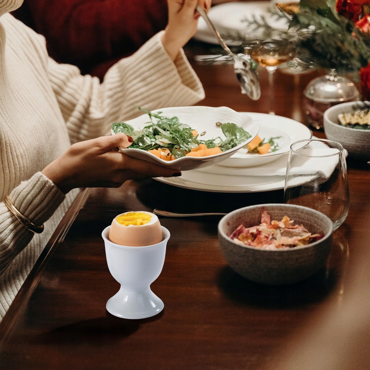 - Фарфоровое яичное стекло. Очки соответствуют яйцам любого размера. Они облегчают введение яиц и идеально держат яйца мягкие или твердые. Благодаря этому яйца легко скользит, что идеально подходит для приготовления завтрака каждое утро.