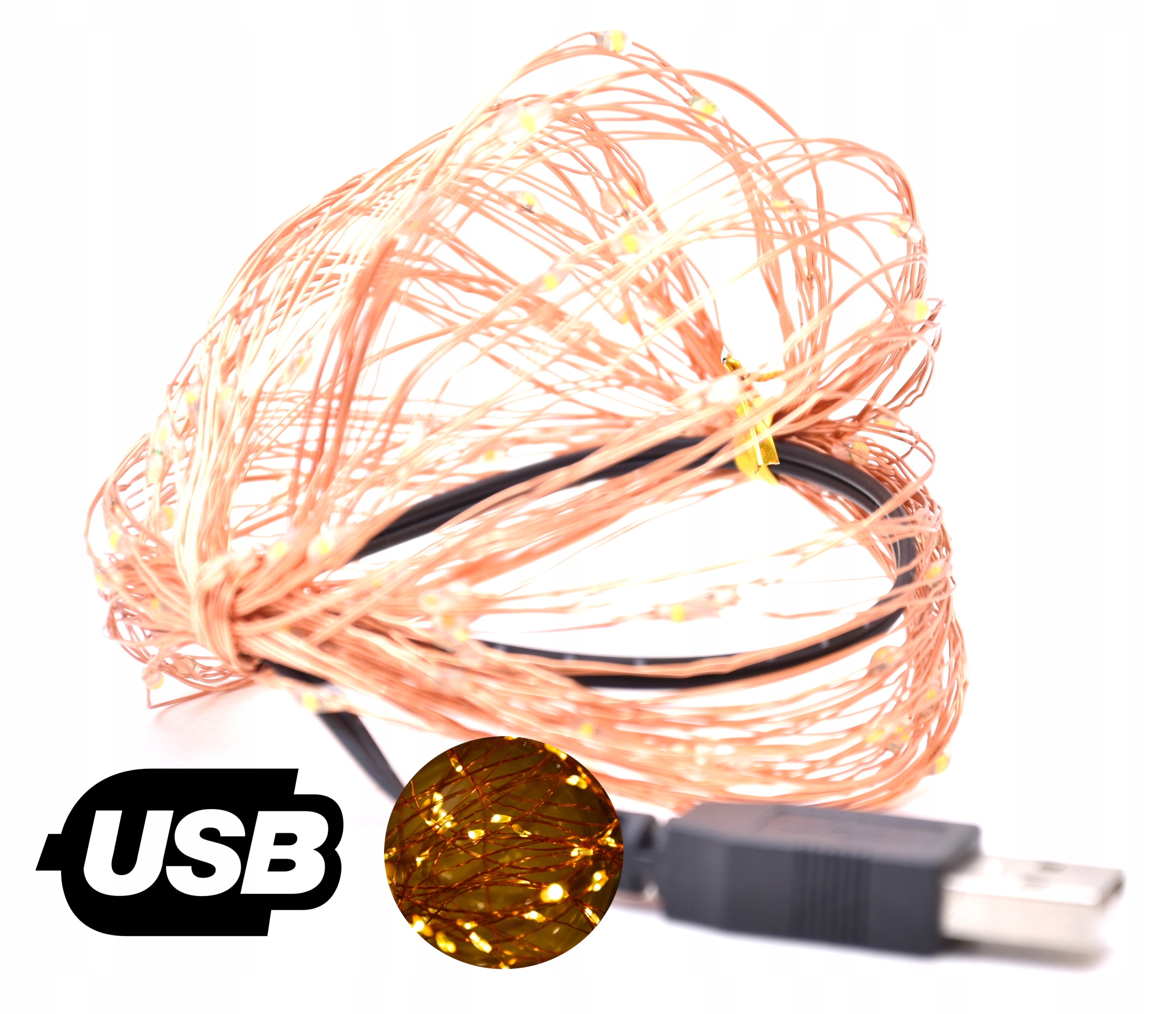 Ялинкові лампи LED 100 ТЕПЛІ БІЛИ USB
