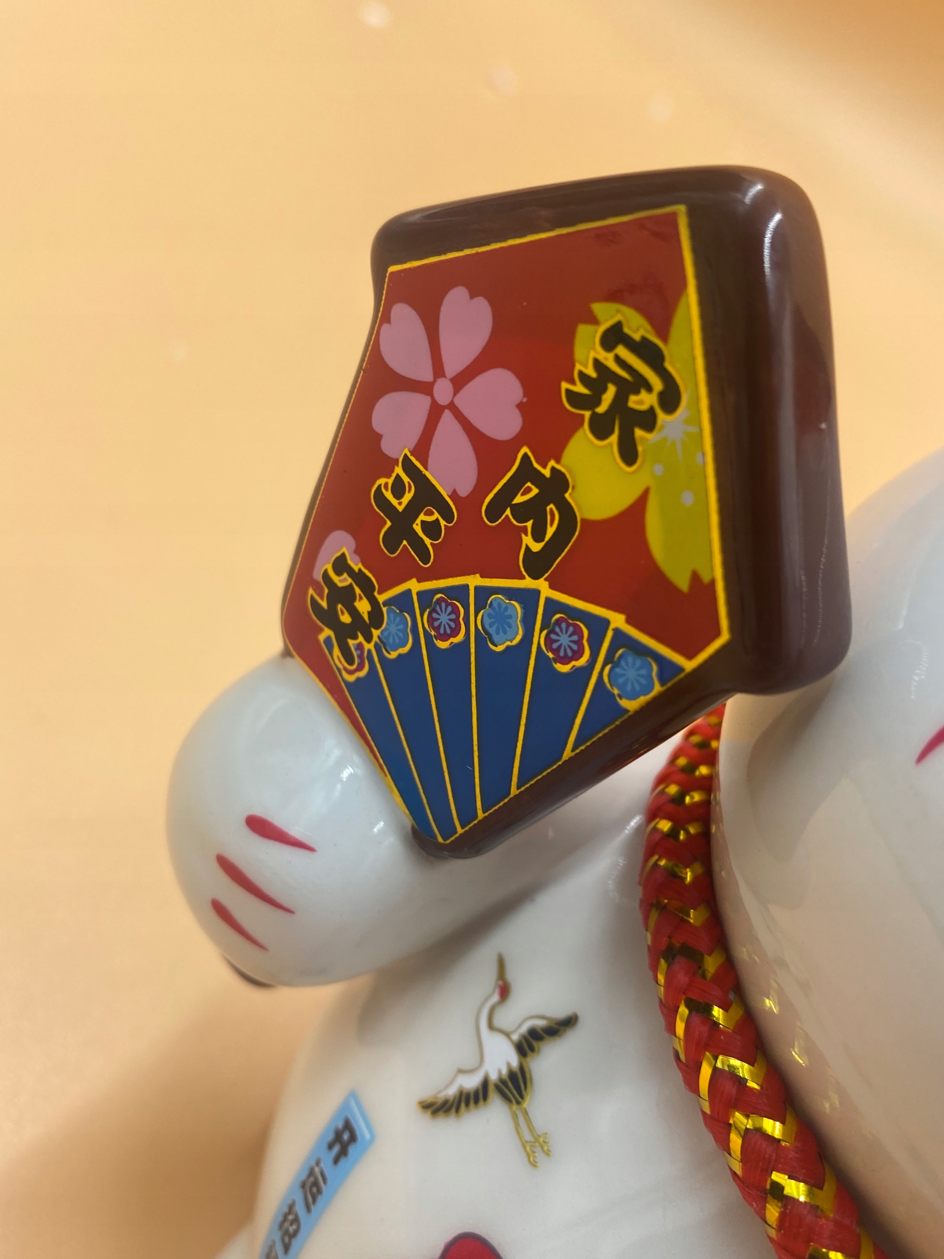 rattles - кошка держит в правой лапе фарфоровой кошечке- набег на деревянную палку, котенок держит две поднятые лапы, напоминающие двойное счастье и напугали злых духов из нашего дома. Счастье-один держит пояс с китайскими признаками счастья, и две кошки держат одну старую японскую монету, это должно дать нам двойное процветание