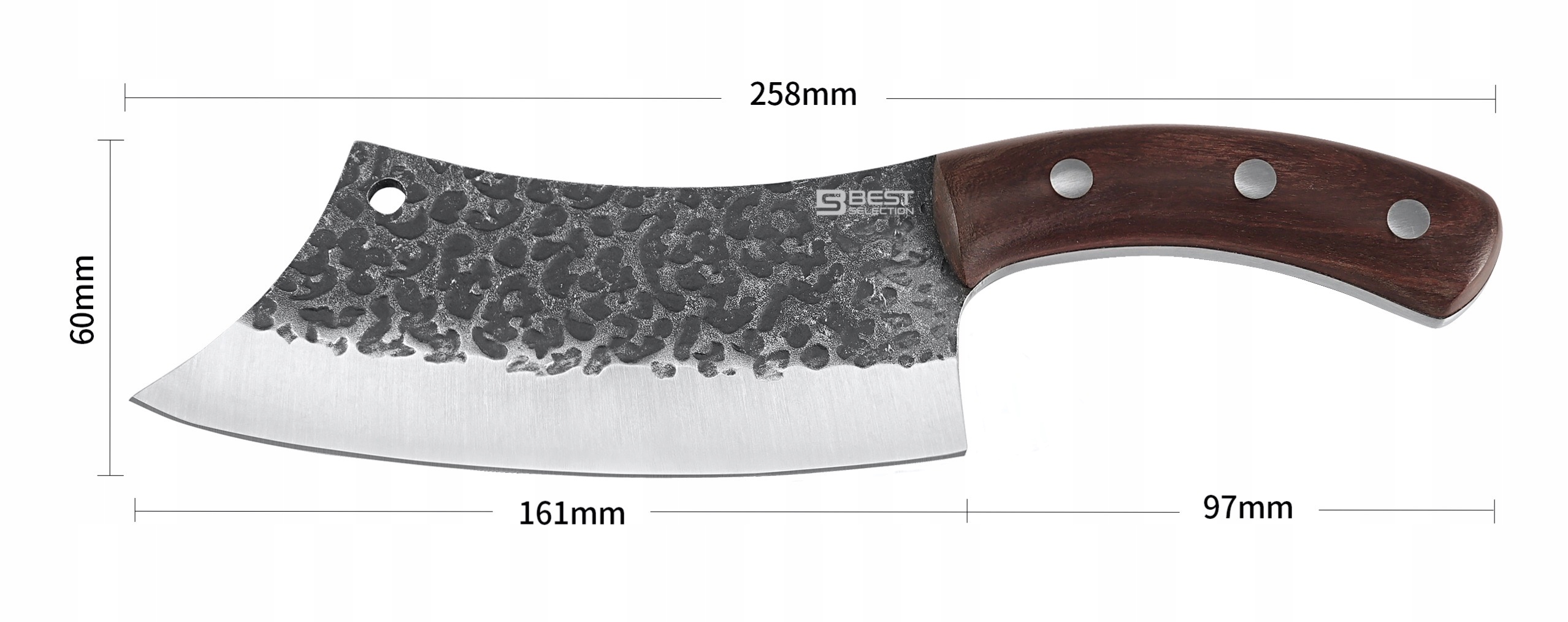 Деревянная часть объятия - это эргономичная, прочная ручка для лезвия из нержавеющей стали. Перекрестная часть является наиболее важным элементом каждого ножа. Ничего после этого инструмента, если вы не порезаете его даже с очень мягким мясом животных. В случае предлагаемой кассеты из лучшей серии вы можете ожидать, что нож, который не только быстро и точно будет вырезать пищу, такую как овощи, но и будет справляться практически с любым типом мяса животных . Ничто не ограничит вас на вашей кухне с помощью нашего Кливера.