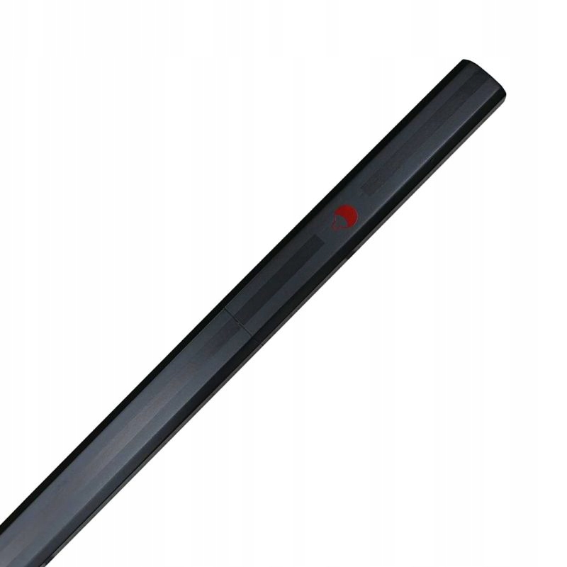Лезвие катаны из бамбукового дерева, рукоять и ножны из пластика. У него очень интересная форма. Все, включая рукоятку, выкрашено в черный цвет с черной лакированной полосой посередине. Сделано добротно и с вниманием к деталям.